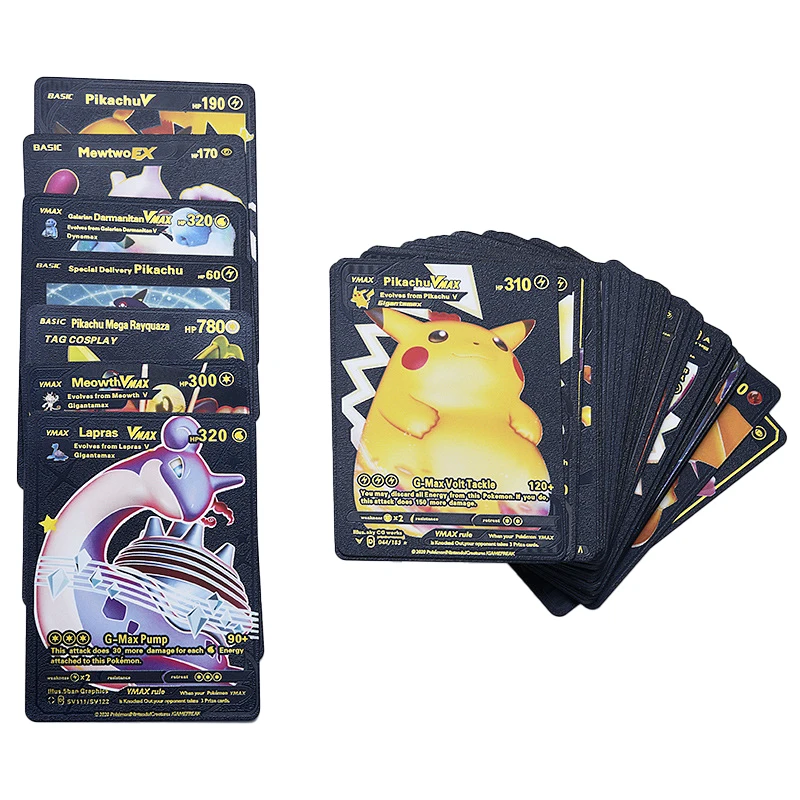 Original English 55pcs Pokemon Game Card Foil Gold Silver Black Collect V Gx Vmax Charizard Pikachu Playing Battle Kids Toy Set