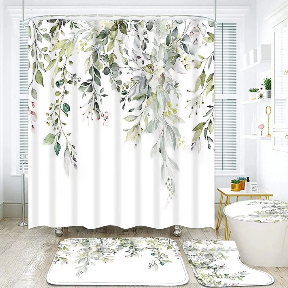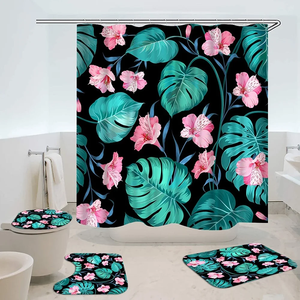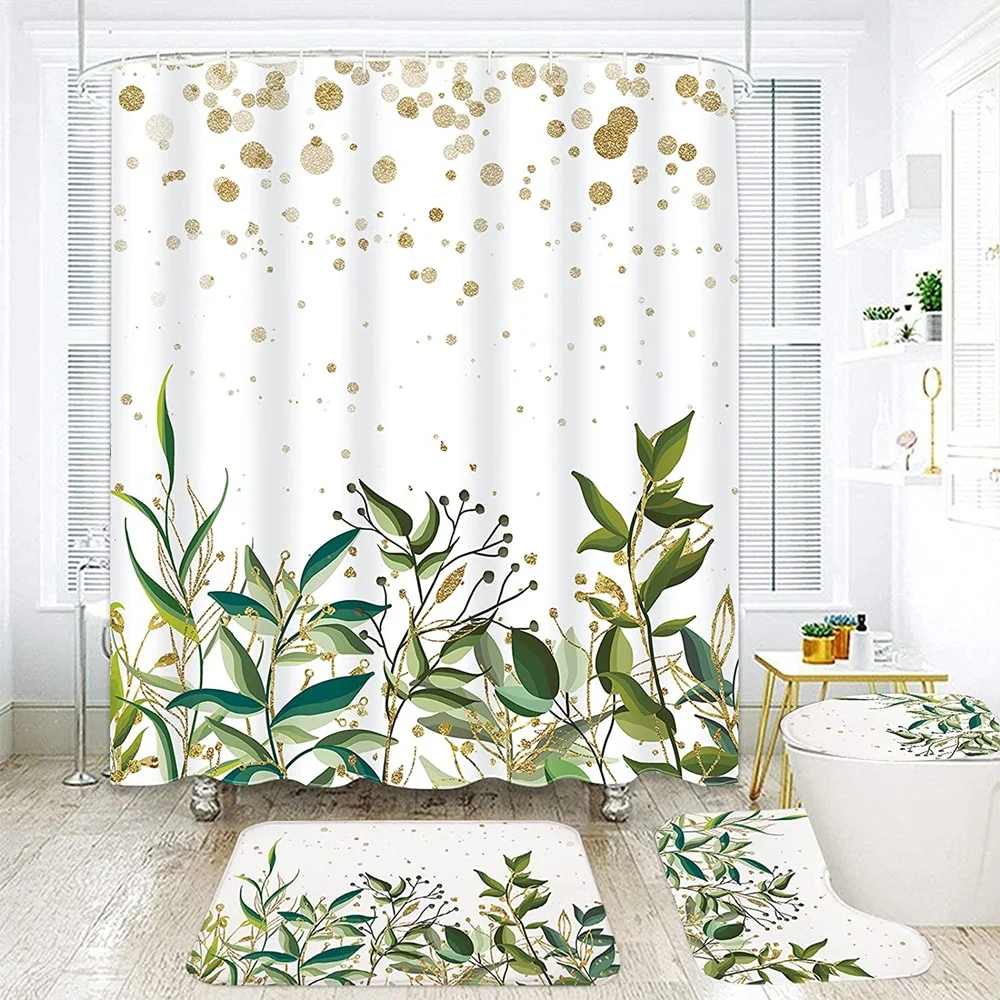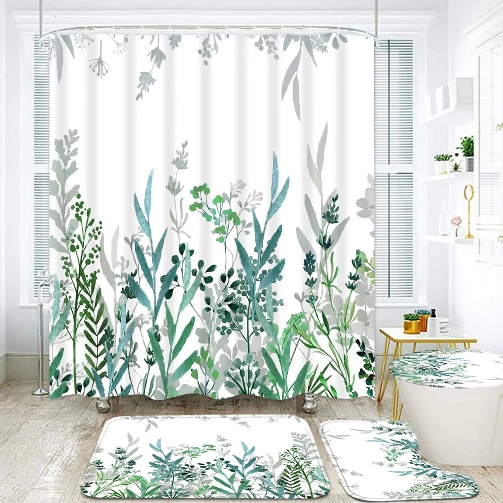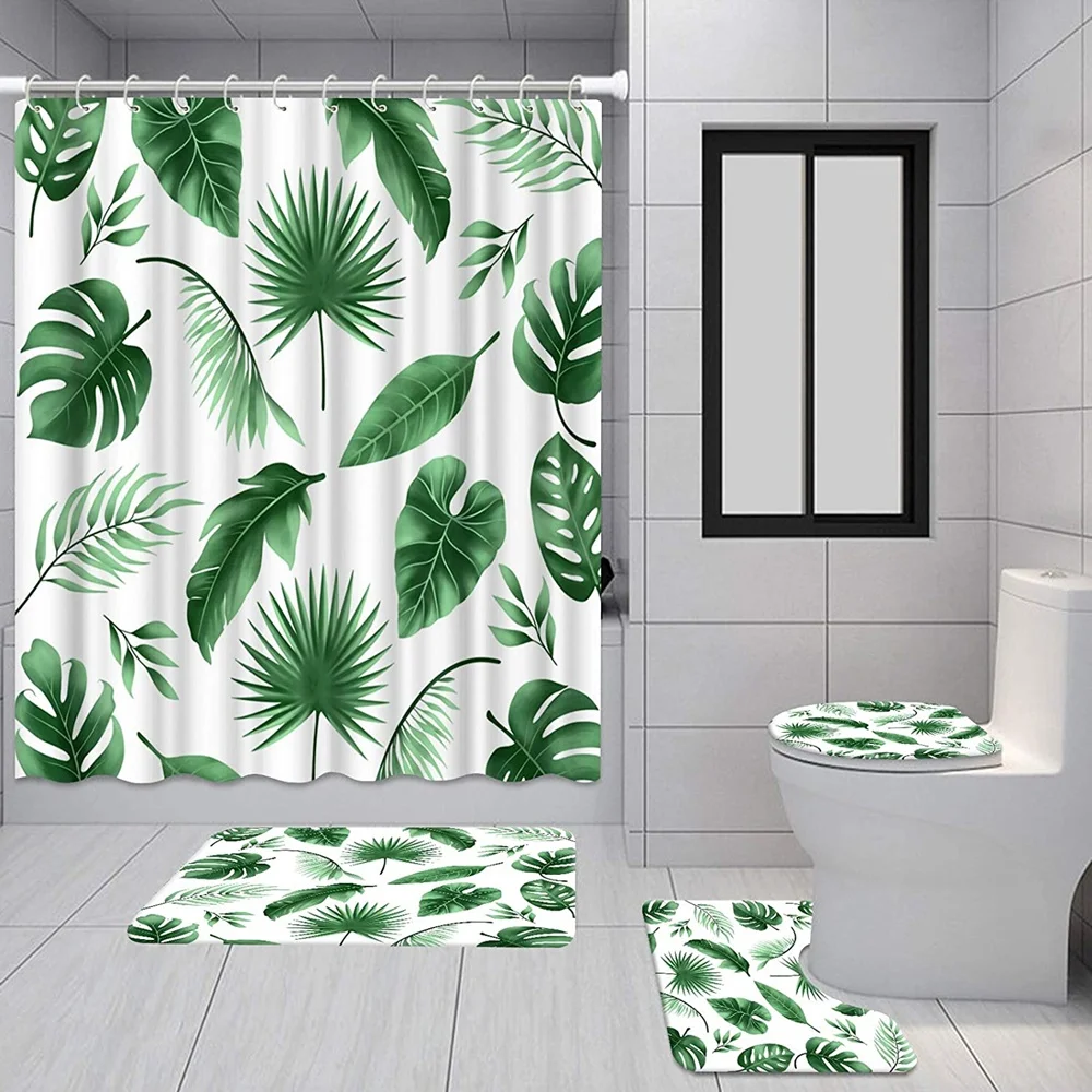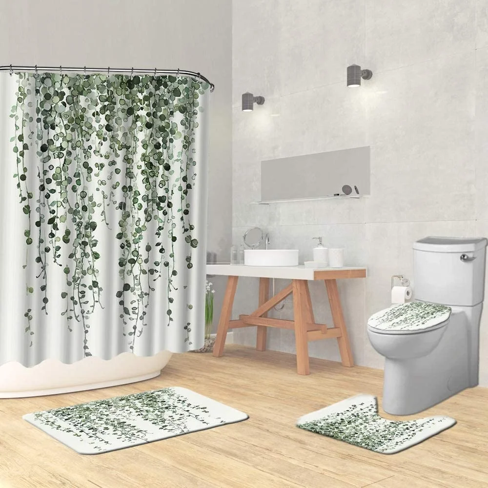 Набор из 4 предметов: 1 занавеска для душа + 1 коврик для ванной + 1 коврик для пьедестала + 1 крышка для унитаза
