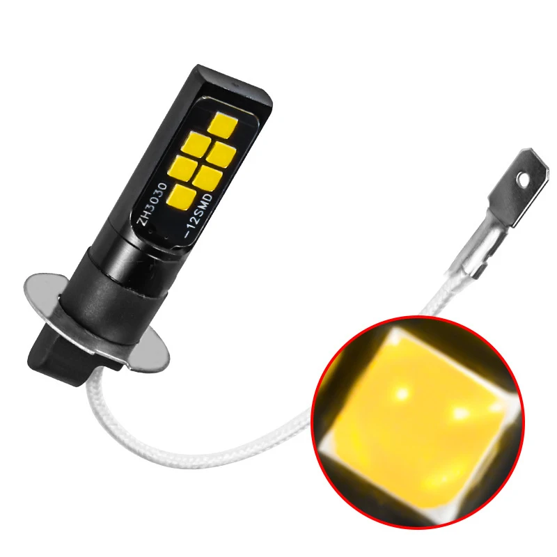 H3 светодиодный противотуманный светильник, лампа DC12V 3030 SMD 6000K, белый, всегда яркий автомобильный противотуманный светильник, аксессуары, 12 светильник