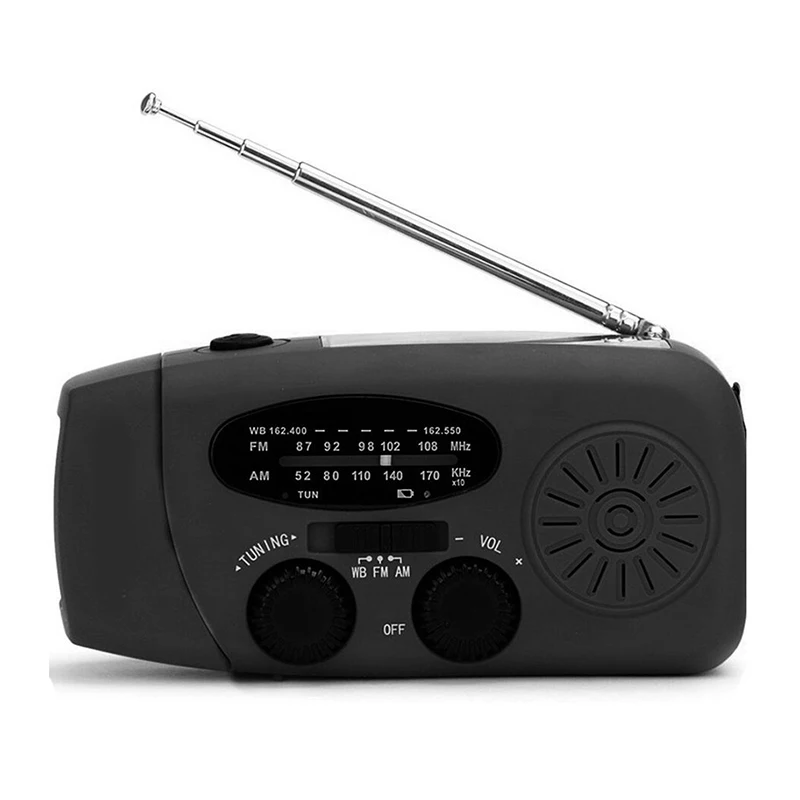 【USB, солнечная и ручная зарядка 】: Нет электричества? Не беспокойтесь. Благодаря 3 способам зарядки перезаряжаемое радио всегда готово к использованию! Мощный аккумулятор емкостью 1000 мА · ч можно заряжать через usb-кабель, панель солнечных батарей или рукоятку.