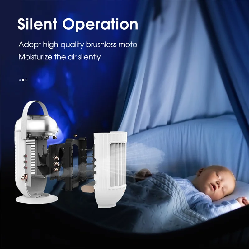 Использование высококачественного бесщеточного двигателя, бесшумная работа, бесшумное увлажнение воздуха, дарит вам ощущение прохлады и комфорта.