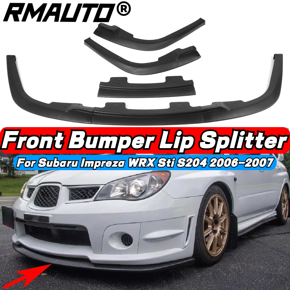 Для Subaru для Impreza WRX Sti S204 2006-2007 матовый черный передний бампер спойлер разветвитель крышка обшивка Боди Комплект 3 шт
