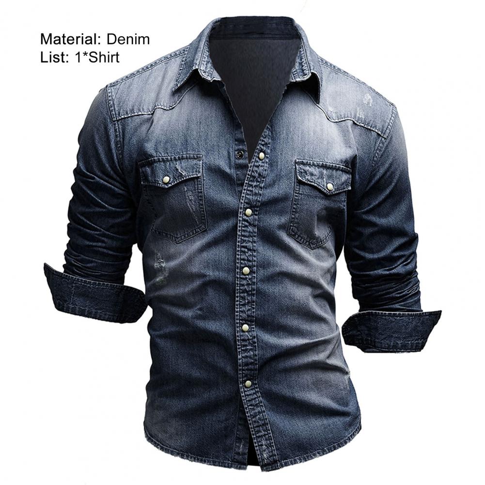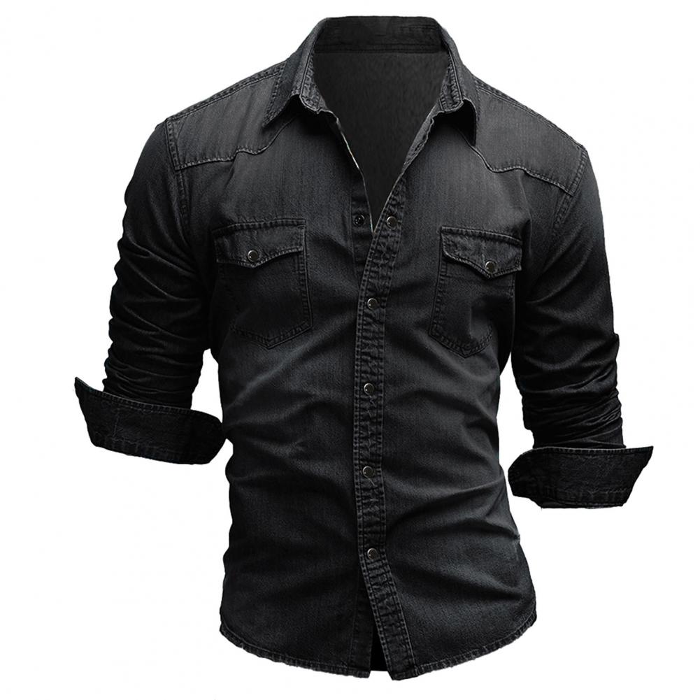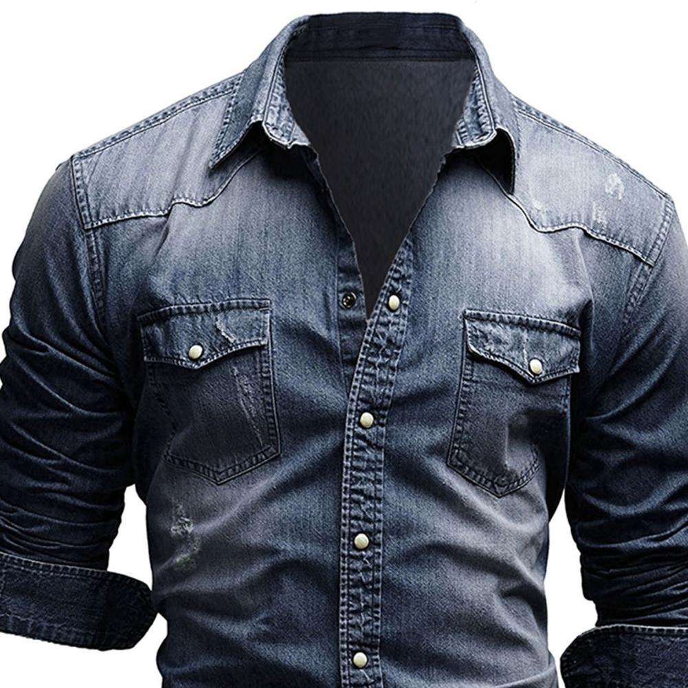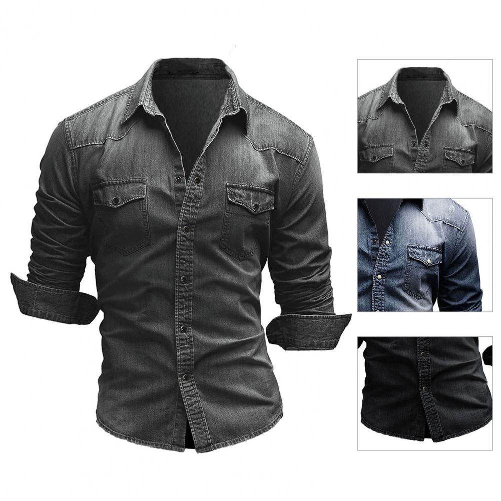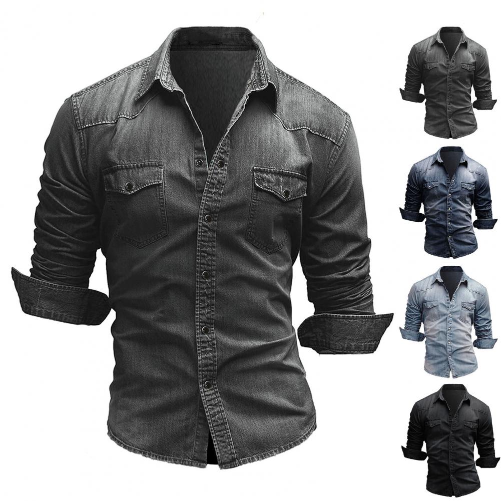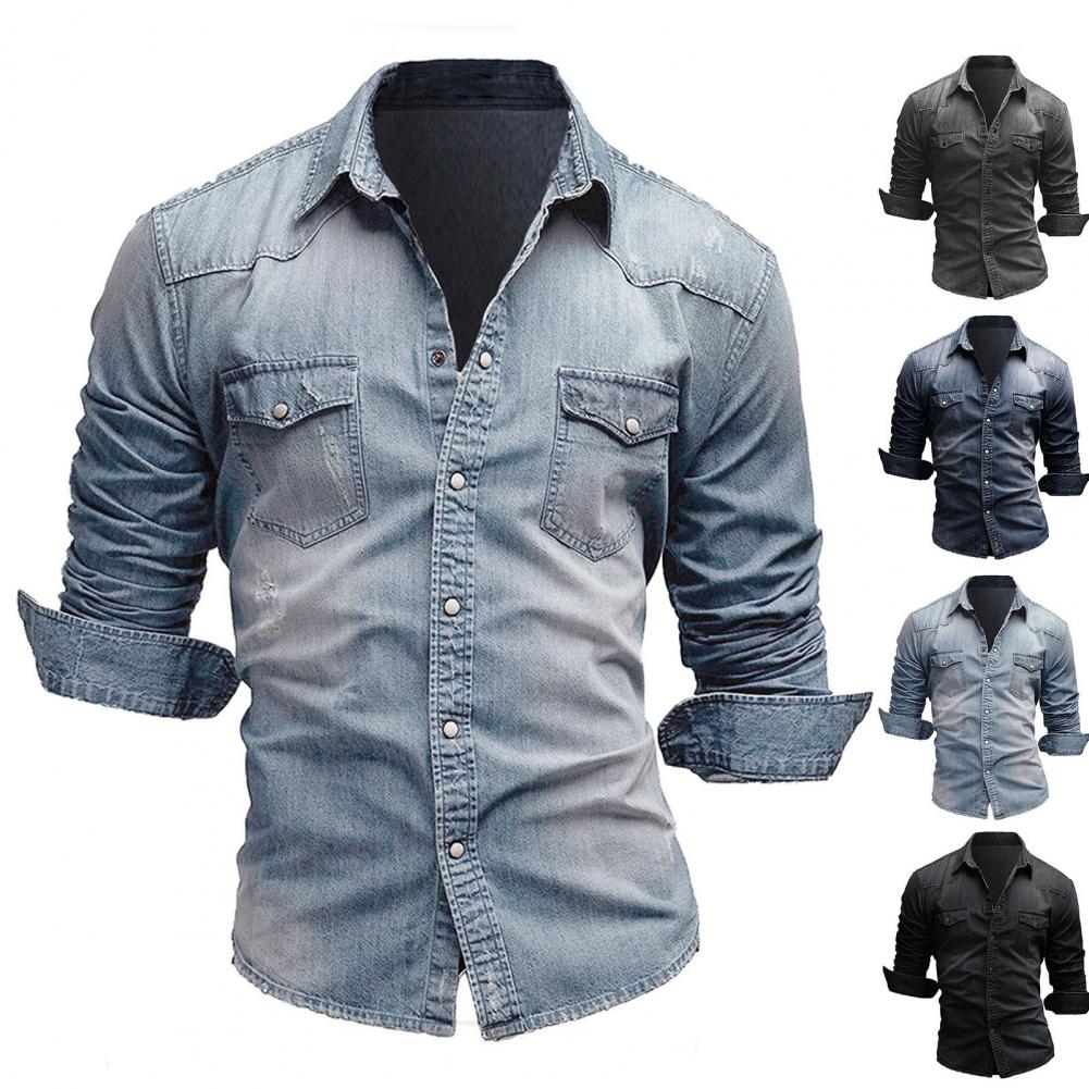 Мужская рубашка, джинсовая однотонная тонкая однобортная Осенняя рубашка для повседневной носки