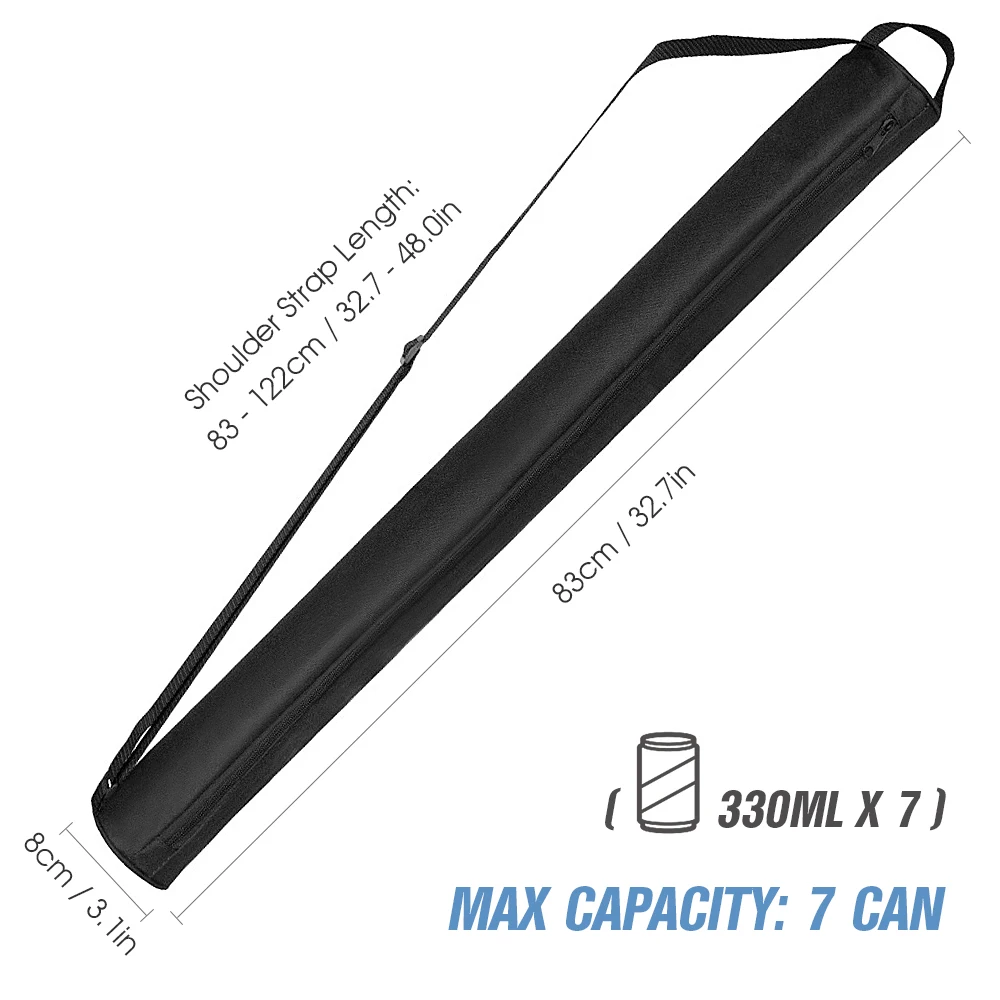 Measures 32.7'' in length, holding up to 7 canned beer (12 oz).