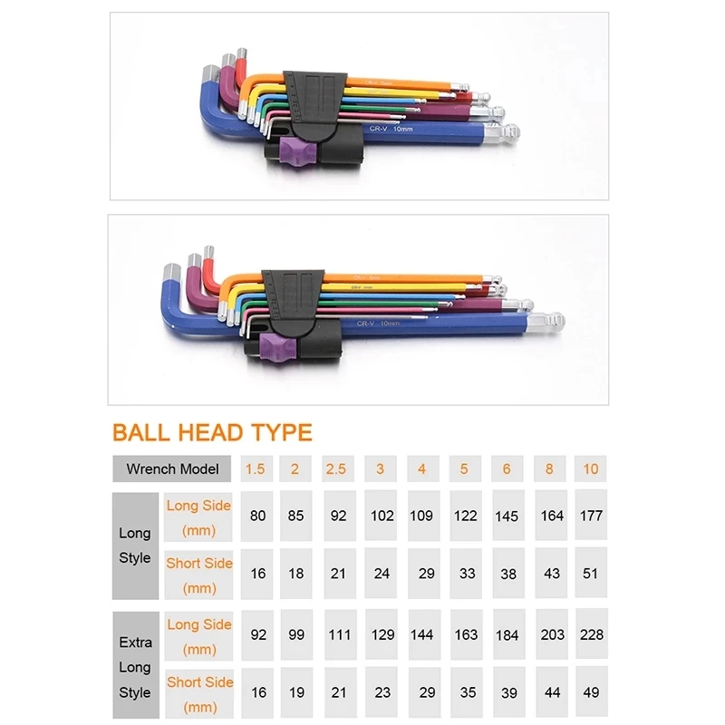 ACCESS TO DIFFICULT SPOTS: Our metric hex key set features extra-long arms for accessing hard-to-reach spots; Each metric Allen set has a hex key set ball-end design for reaching at angles up to 25 degrees