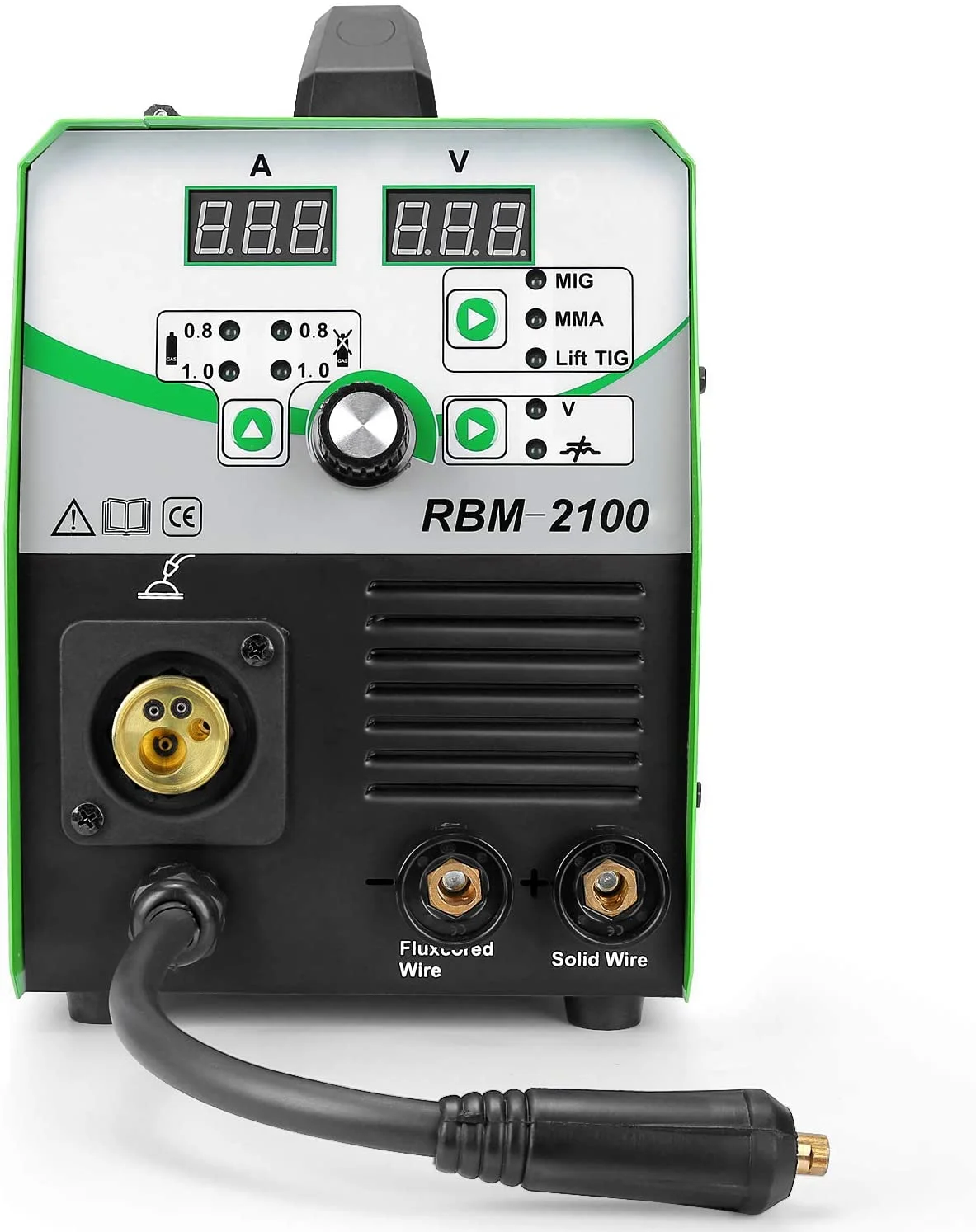 1 шт. источник питания Mig сварочный RBM-21001 шт. 2 м кабель + Заземляющий зажим1 шт. 2 м кабель + держатель электрода1 шт. 3 м Mig MB15 сварочный фонарь1 шт. флюс кордовая проволока 1кг без газового сварного шва1 шт. 3 м сварочный газовый шланг1 шт. 20 м 110/220V конверсионной линии7. Многофункциональность: сварочная нержавеющая сталь, мягкая сталь, другой металлический материал8. Домашнее использование, частота переключения выходит за рамки диапазона звука, что почти устраняет шумовое загрязнение9., по которым вы можете смело совершить покупку в нашем магазине, так как мы предлагаем 30-дневный 100% удовлетворение или гарантию возврата денег и ограниченная гарантия 1 годПараметр:Входная мощность: Однофазное AC220V ± 15% в переменного тока, 50/60 Гц.Номинальный входной ток: 43/30.6 AНоминальная мощность: 4,2 кВАДиапазон регулировки тока: 30- 210AДиапазон регулировки напряжения: 15-24 ВНапряжение без нагрузки: 60 ± 5 ВДиаметр проволоки: .030 "-.035" (0,8/1,0 мм)Пластина Толщина: свыше. 030 "(0,8 мм).Диапазон регулировки скорости подачи: 2-15 м/минРабочий цикл: 40% при 210A и 100% при 136AВес: 12,8 кг (28.2bl), 13,6 кг (30bl)Размеры: 21*12*13,8 дюймов (540*310*350 мм)Устранение неполадокПочему мой сварочный аппарат RBM-2100 неправильно сварочный аппарат?1. Напряжение подачи проволоки: Проверьте напряжение на катушке. Слишком ли он тугой или напряжение подачи проволоки не установлено правильно?2. Выбор провода: вы используете провод 3/8 "? Мы рекомендуем. 030-0,35 "для лучшей производительности.3. Придерживайтесь: ваша палка слишком длинная? Ваша палка не должна быть больше, чем ½ ”.4. Нажмите на спусковой механизм: чтобы начать сварку, нажмите на пусковое устройство на пистолете MIG.5. Правильное Заземление: земля не должна быть прикреплена к окрашенному или покрытому металлу.
