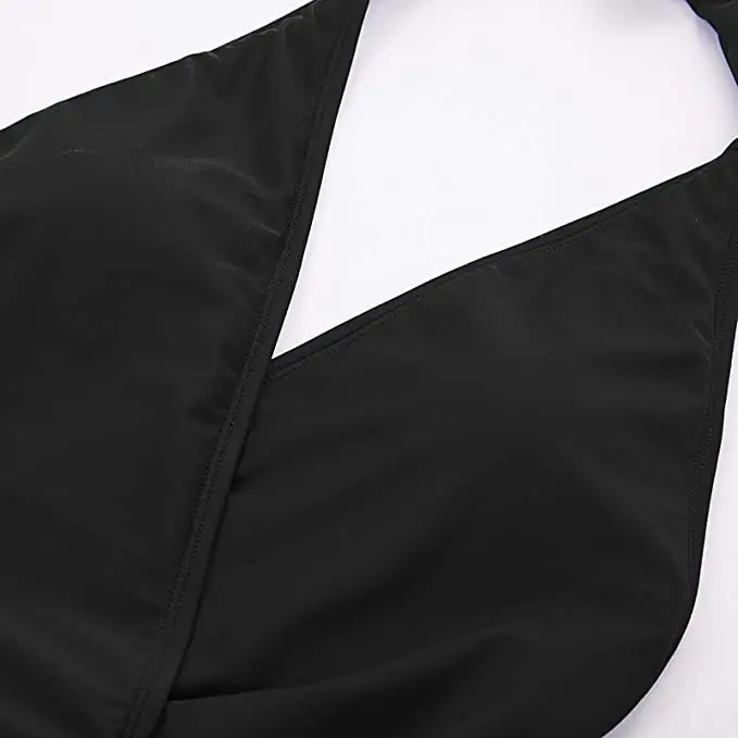 Высокая стрейчевая ткань, с лямкой на шее плечевой ремень спереди топ с запахом с имитация ремня дизайн выглядит дорого и элегантно.