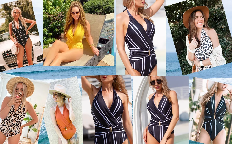 Купальник с высокой талией спроектирован поперечной обмоткой спереди, глубоким v-образным вырезом, имитация ремня для похудения и контроля живота.