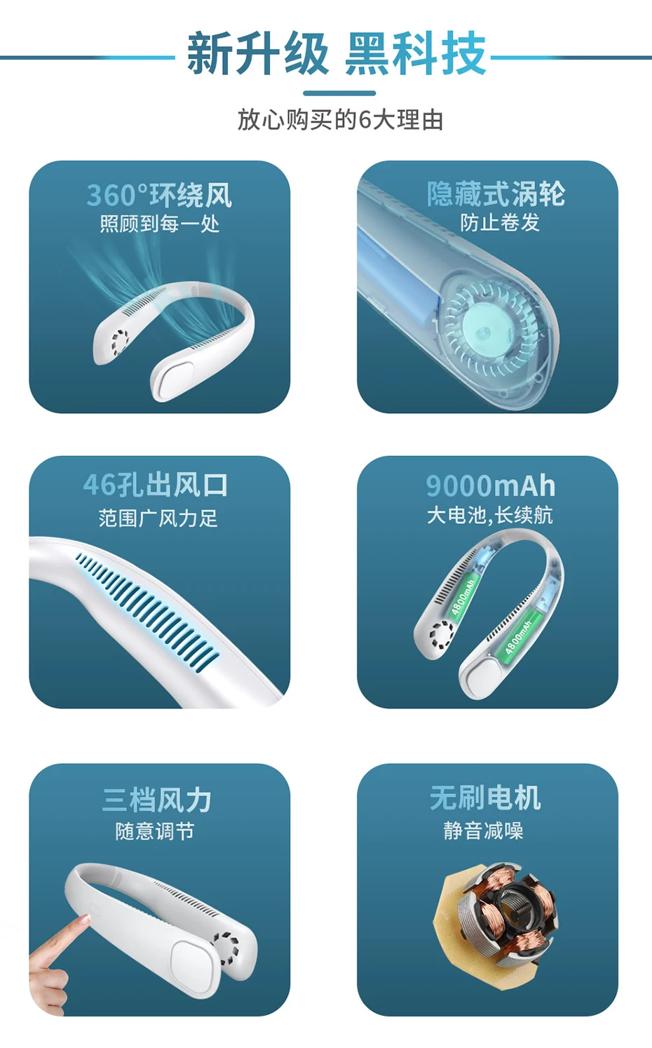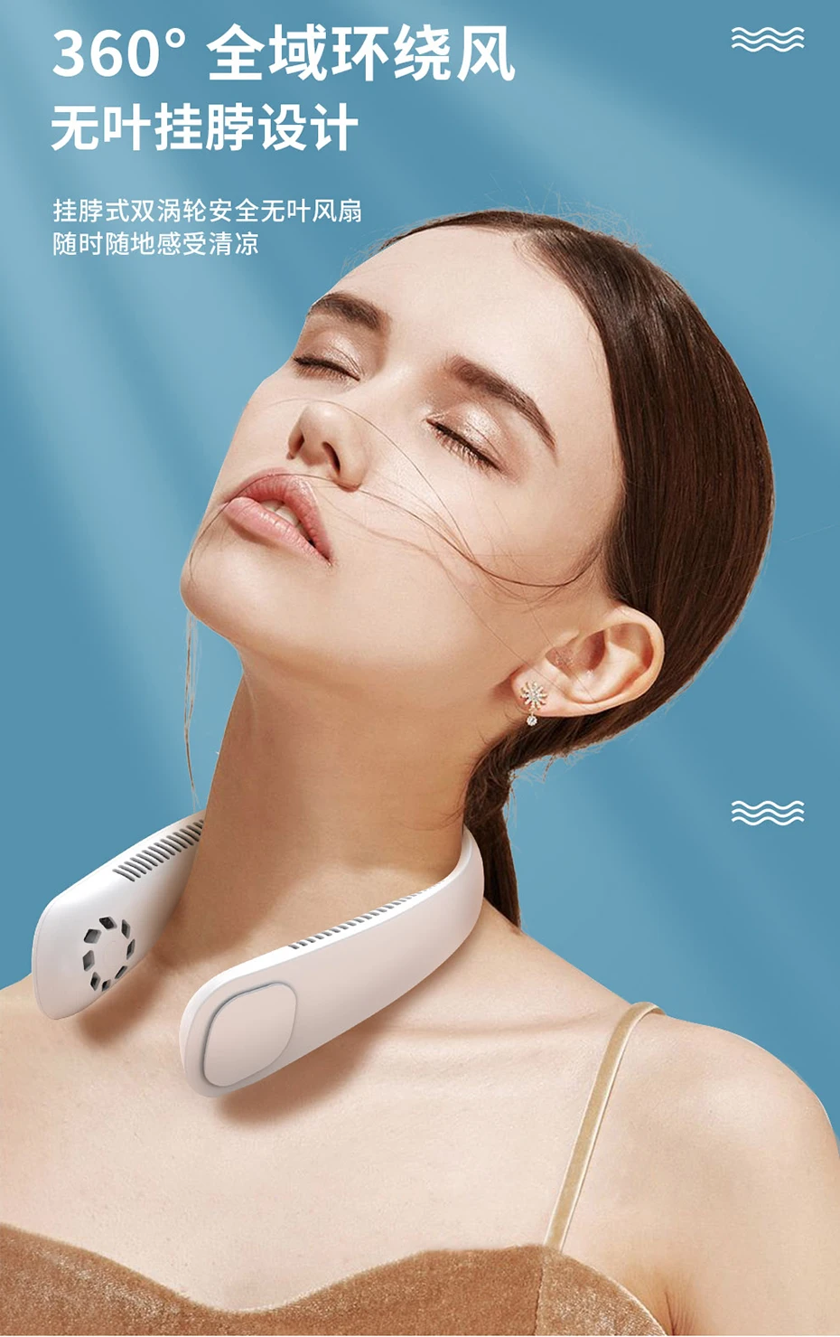 Листовый с завязками на шее вентилятор с воротником-хомутом для маленьких девочек Twin Turbo Безопасность безлопастной вентиляторы 3-скорость ветра бесщеточный мотор Тип-C зарядки с 9000 мА/ч, Батарея 360 ° объемного ветер 46 отверстие выхода воздуха чехол-накладка из термополиуретана для приятная на ощупь Материал с регулируемым углом наклона