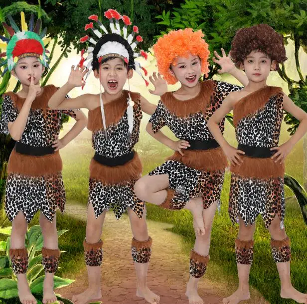 Маскарадный костюм на Хэллоуин для мальчиков и девочек; Карнавальный костюм дикого человека; Костюмы леопардового цвета с флинстоном; Одежда для индейцев в африканском стиле