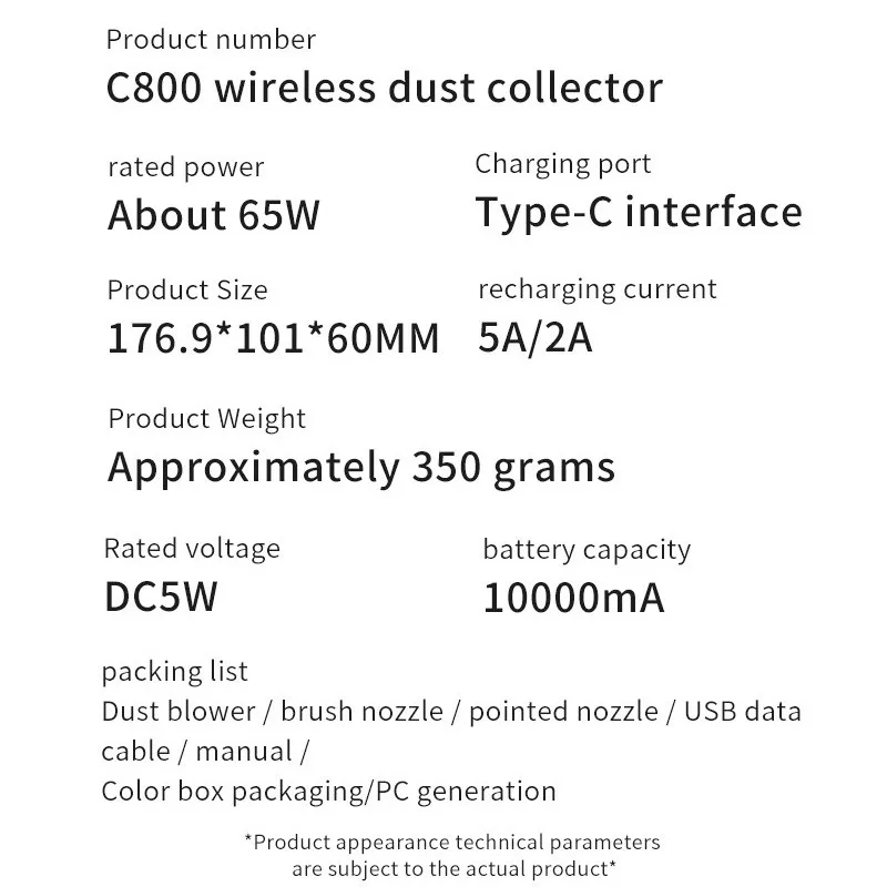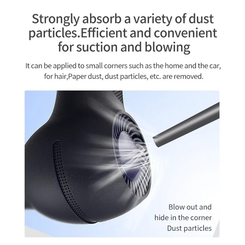 1. Этот осадитель может генерировать сильный воздушной тяги мы имеем более чем 10 уровней при сильном ветре (28 м/с), 360 °, что обеспечивает глубокое очищение кожи крошечных пыли без мертвого Уггла, И может быть применен в диапазоне от печатных плат до компьютеров, электронных инструментов, медицинского оборудования и многого другого. Какая хорошая работа, она идеально решает проблему, что традиционные дворники или пылесборники не могут очистить.