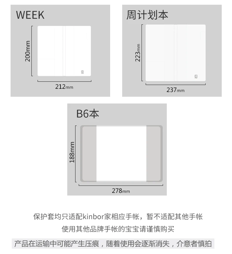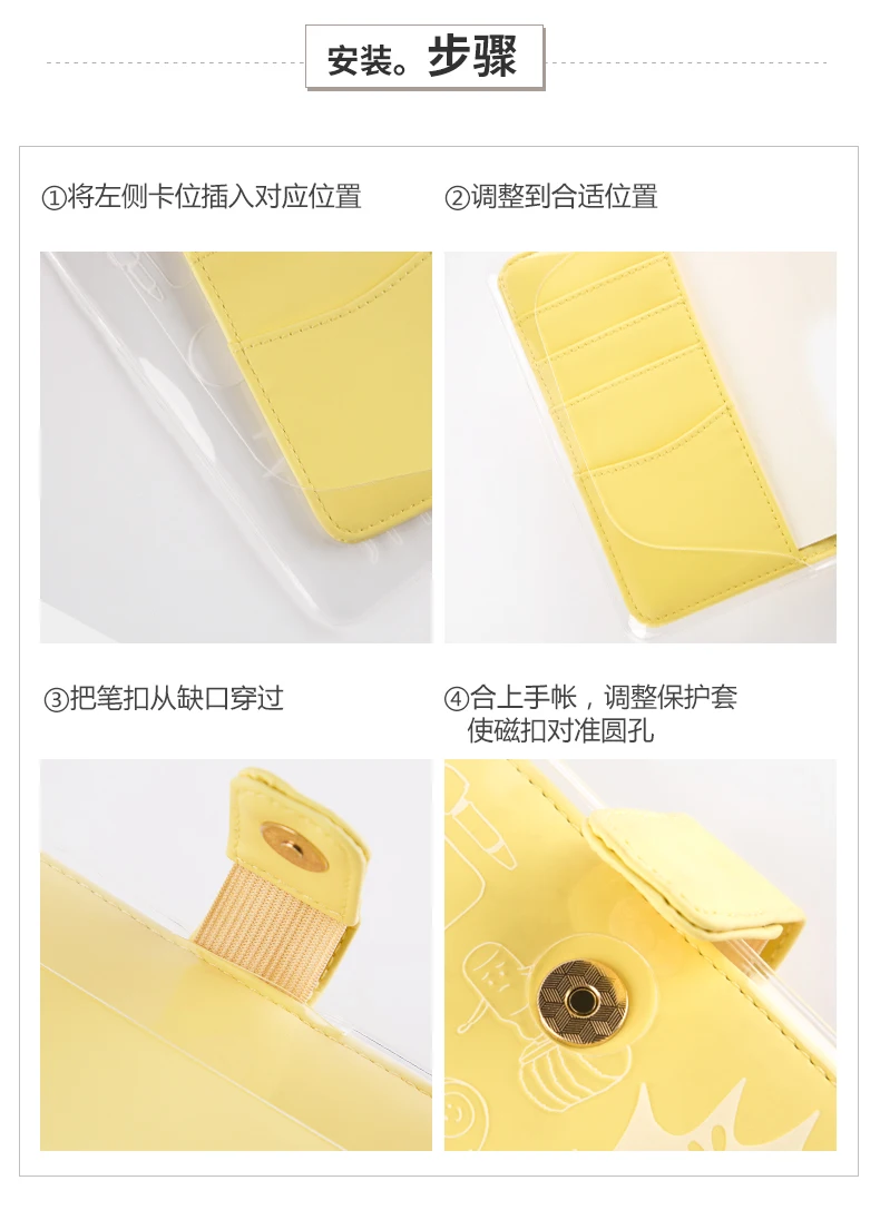 Kinbor прозрачный ПВХ рукав A5 A6 Kawaii мультфильм шаблон защиты палатка еженедельник планировщик тетрадь набор защитный чехол Аксессуары
