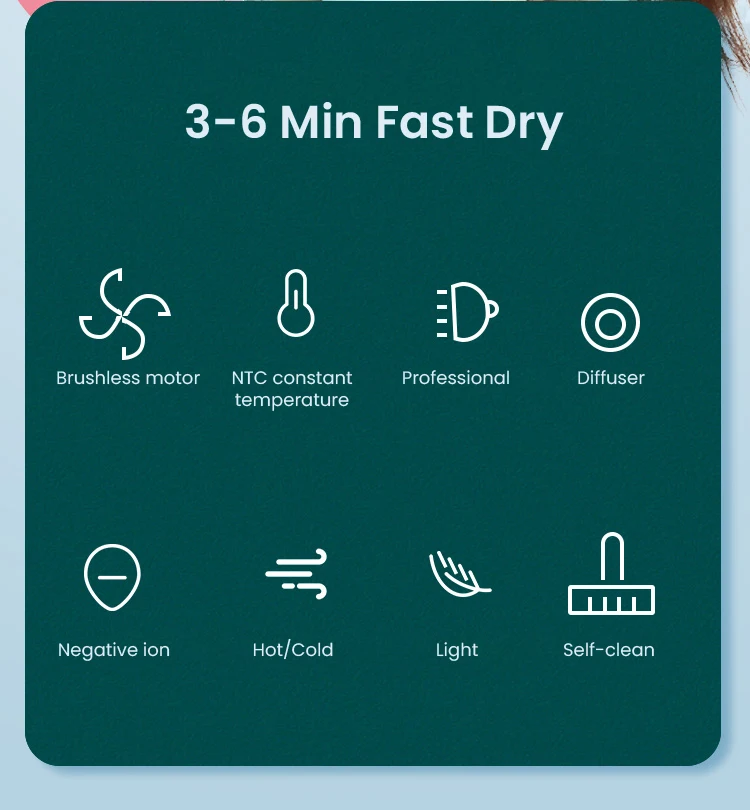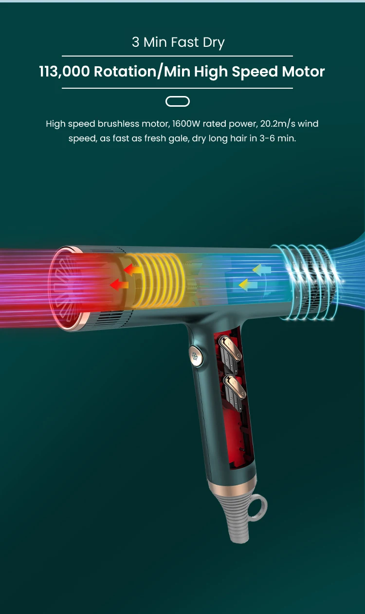 Товар: фен для волос бесщеточный высокоскоростной двигатель 20,2/м/с скорость ветра 113000 об/мин двигатель 3 шестерни температуры самоочищающийся цифровой экран воздушный диффузор Профессиональные Стильные насадки