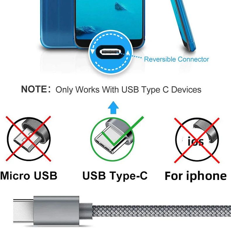 【Широкая Совместимость 】 usb-кабель A-USB C идеально совместим с Samsung Galaxy amsung Galaxy Note, LG, Moto, Google Pixel и другими смартфонами и планшетами USB C.