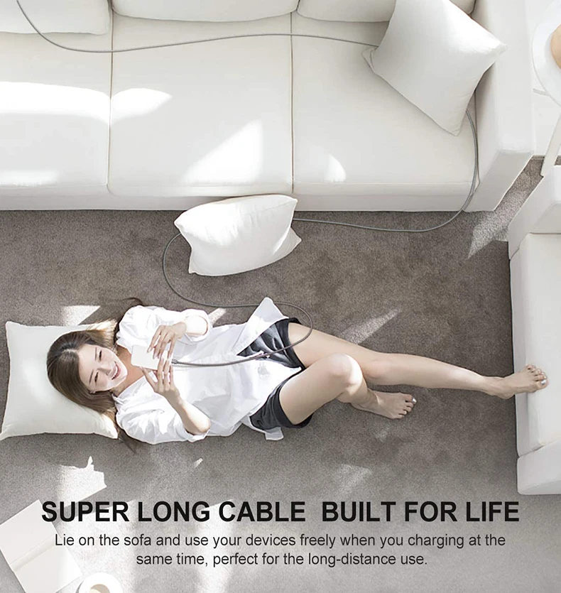 【 26ft ультра-длинный USB C кабель】: 25ft (около 7,9 м) Тип C зарядный кабель мешает вам быть ограничены в тех случаях, когда используете устройство для зарядки в одно и то же время. Вы можете использовать его в офисе, гостиной, спальне и заряжать телефон в любое время. Вы также можете свободно управлять телефоном во время чтения, игр и звонков на диван.