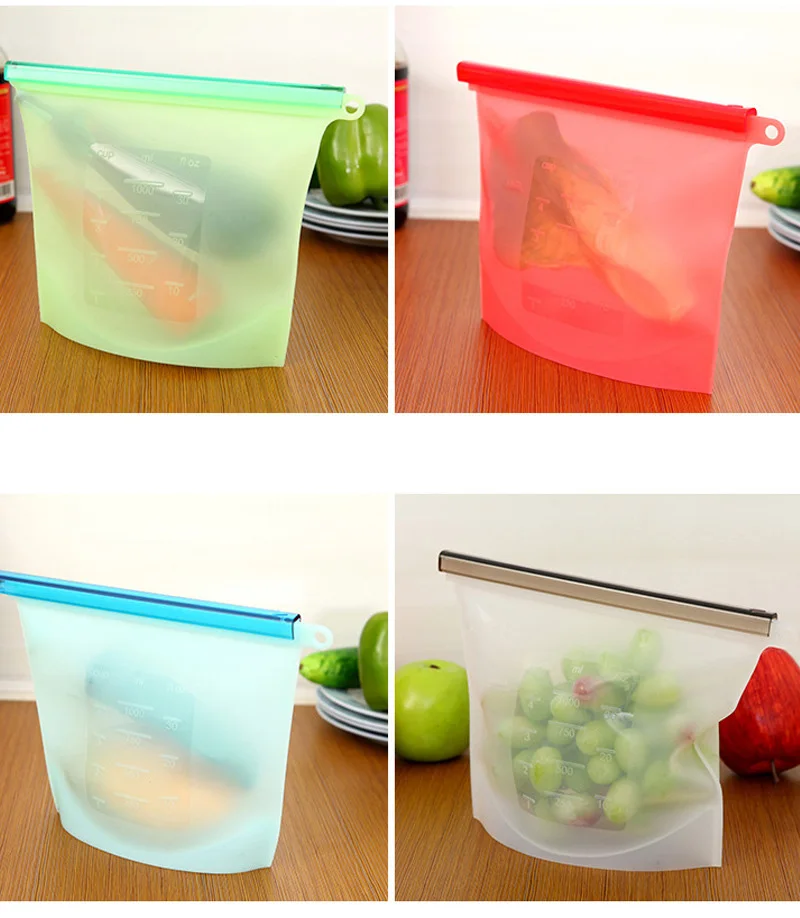 500/1000 мл силиконовый Пакет для хранения пищевых продуктов Многоразовые герметичные пакеты для овощей, жидких закусок, мяса, микроволновой печи, нагревательный инструмент