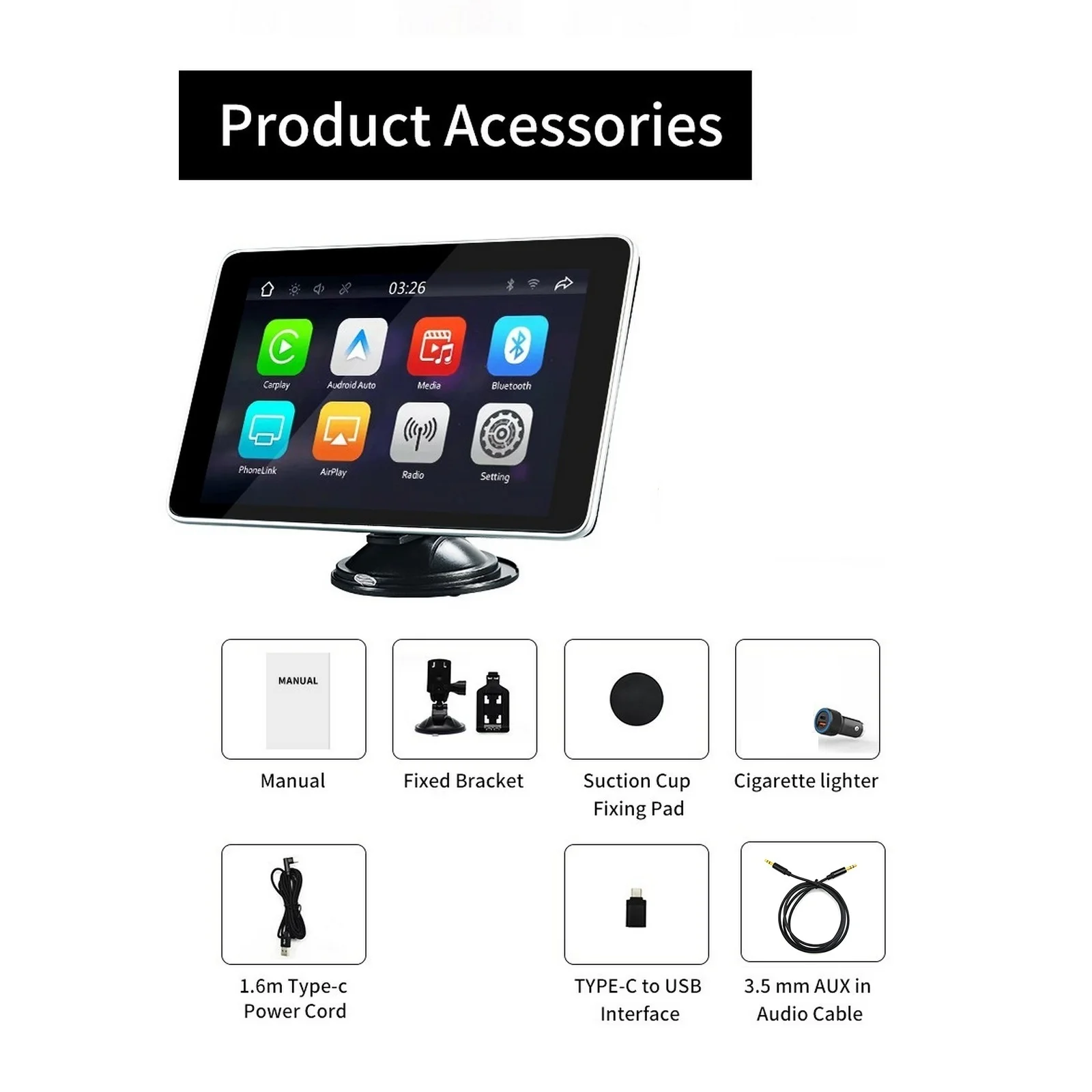 Беспроводной Carplay Android Auto Carplay планшет Портативный мультимедийный плеер стерео 7,5 дюймов Экран Dual Bluetooth автомобильным видеоплеерамОсобенности:1. Несколько способов взаимодействия: Встроенный 5G, 2,4G Двухрежимная Wi-Fi связь для обеспечения стабильной работы автомобиля CarPlay & Andriod. Поддержка четырех способов подключения: Wireles Carplay,Wireless Andriod Auto,Wireless Airplay Link и Phone Link.2.CarPlay: Беспроводная система CarPlay в автомобиле позволяет безопасно использовать ваш мобильный телефон в автомобиле и синхронизировать мобильные приложения. Фокусируясь на вождении, вы также можете синхронизировать свой мобильный телефон с навигационным программным обеспечением, музыкальным программным обеспечением, телефонными звонками, Siri voice, Google voice, отправкой и получением сообщений и т. д.3. Беспроводной Android Auto: Подключите телефон к дисплею автомобиля, ваши приложения Android отображаются на экране.4. Ссылка на телефон: в режиме реального времени скринкация мобильных телефонов, поддержка всех функций в мобильном телефоне, синхронизация приложения на мобильном телефоне с экраном автомобиля, А также поддержка контроля в реальном времени кнопок и сенсорных экранов.5. Функция памяти: Дата времени и частота FMT могут быть запоминаны и обновлены автоматически.6. Функция мультимедиа: Встроенный fm-передатчик, может передавать аудио на оригинальный автомобиль, сохраняет хорошее качество звука. Встроенный BT 5,0, поддержка телефонной книги, телефонного звонка, музыки. Поддерживает внешний микрофон, собирает звуки более четко.7. Система: система Linux, производительность стола и быстрая работа.8. Экран: 7,5 дюймов Анти-блики IPS Экран 1280*768, поддержка функции касания.9. Дизайн: Используйте новейшие технологии и специальный скрытый дизайн, более удобный и модный.10. Кронштейн для полной загрузки: кронштейн с полным углом, который можно регулировать вверх и вниз, влево и вправо, спереди и сзади, вращение на 360 ° и любой угол.11. Два способа размещения: вам не нужно разбирать автомобиль, вы можете установить его самостоятельно, использовать присоска для лобового стекла, чтобы повесить вверх дном, или вы можете контролировать вертикальную установку.Характеристики:Система: Linux системаТип материала: пластик + компонентыЭкран Размер: 7,5 дюймовТип экрана: G + G антибликовый IPS экранРазрешение: 1280*768Сенсорный экран: Поддержка178 градусов большой угол обзораПорт s: порт Type-C, Порт MIC, слот для tf-карты, порт заднего хода, видеовыходИзлучение сигнала: FM передача, BT передачаВращение кронштейна: Универсальное вращение, вращение на 180 ° и вращение на 360 °Функция 1: Беспроводная CarplayФункция 2: Беспроводная Andriod AutoФункция 3: телефонная связь (встроенный Applepie, проекция экрана телефона Android)Функция 4: встроенная функция AirPlayФункция 5: Встроенный fm-аудио передатчикФункция 6: встроенная беспроводная функция передачи аудио BTФункция 7: Встроенный BT 5,0 функция телефона, телефонная книга, BT аудио функцияФункция 8: встроенная функция воспроизведения мультимедиа, поддержка фильмов высокой четкости, lossless musicФункция 9:Google voice и Siri voiceДля модели автомобиля: УниверсальныйМульти-Dcene Применение: Автомобиль. Грузовик. Автобус. Мотоцикл. Такси.Рабочее напряжение: 5V-36VМетод 1: Автомобильный usb-портМетод 2: внешний аккумулятор (* его можно включить, подключив к источнику питания)Ссылка CarPlay:1. Откройте BT на устройстве.2. Откройте устройство Carplay.3. О