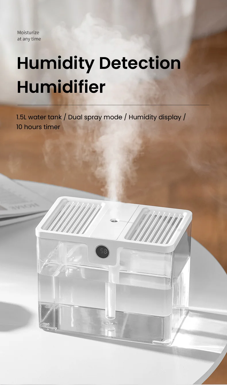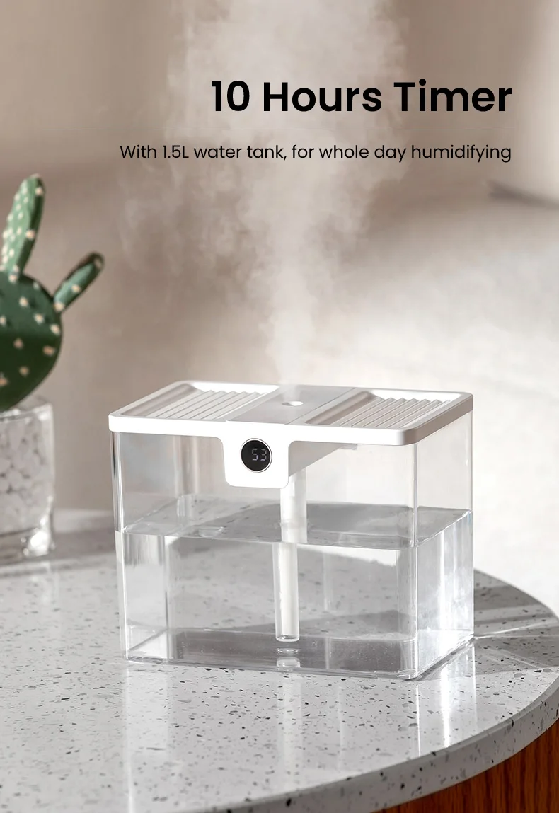 Портативный Настольный увлажнитель воздуха низкий уровень шума 1,5л резервуар для воды десять часов таймер двойной спрей режимы увлажнитель воздуха устройство USB Перезаряжаемый