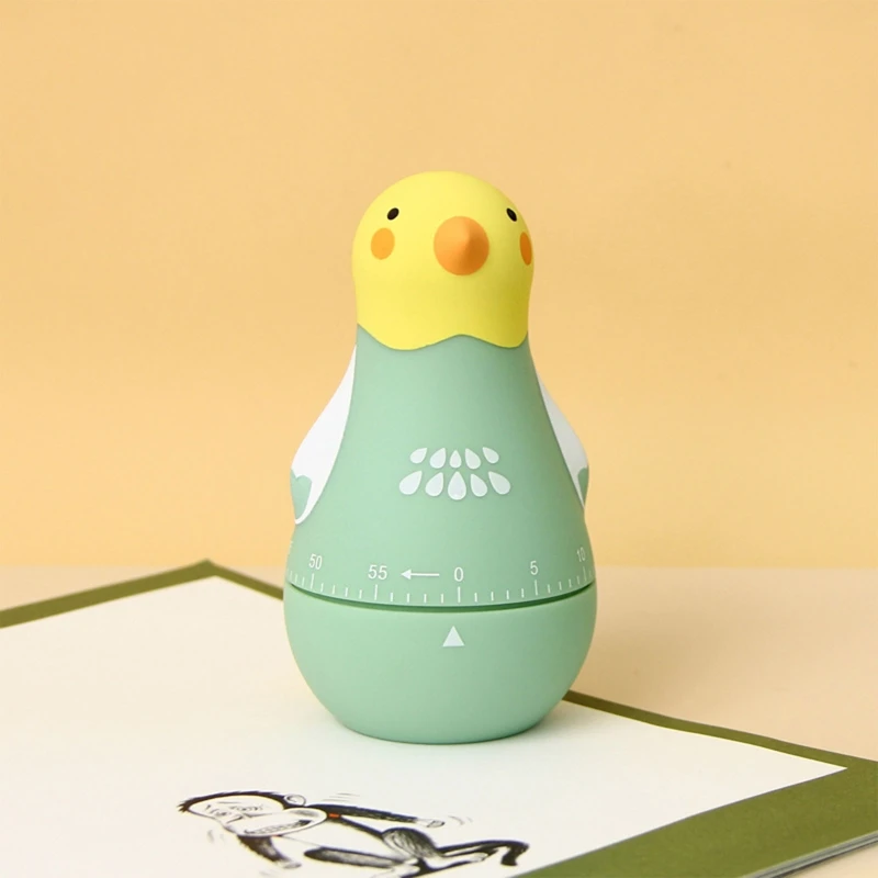 Милый мультяшный попугай, кухонный таймер в виде фигур, 60 минут, механическое напоминание о времени ветра, ручной обратный отсчет, звонок, обучающий помощник, инструмент для приготовления пищи