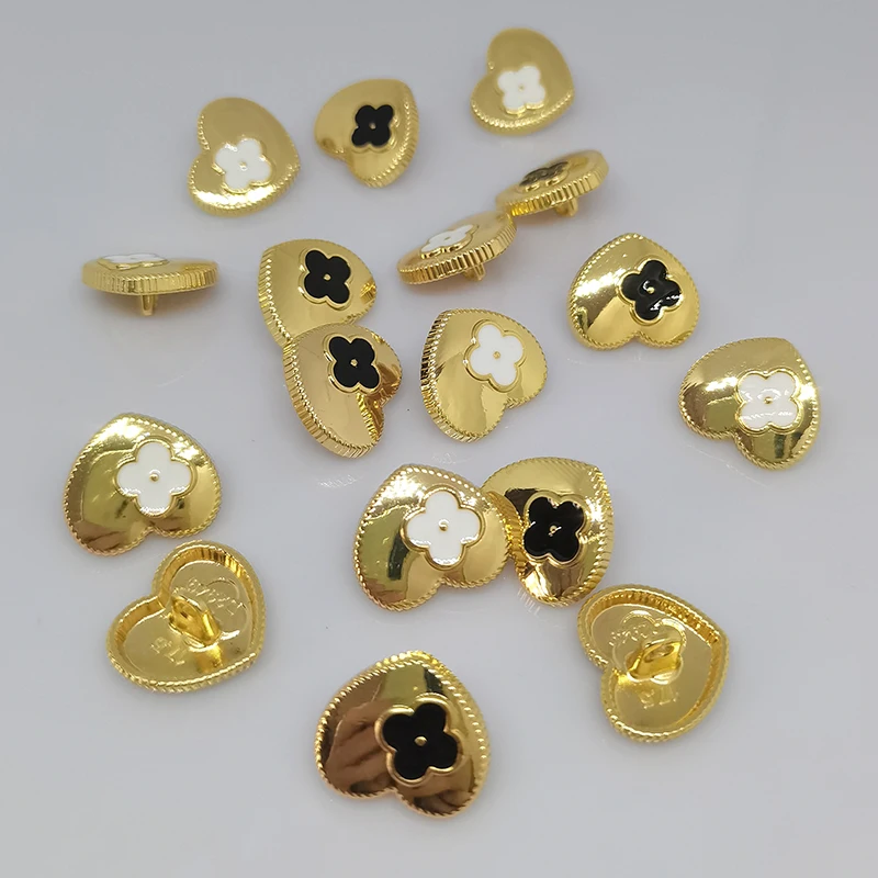 Золотые металлические пуговицы в форме сердца для одежды, модный Декор, черно-белые металлические кнопки для рукоделия, Швейные аксессуары, одежда, сделай сам, Botones