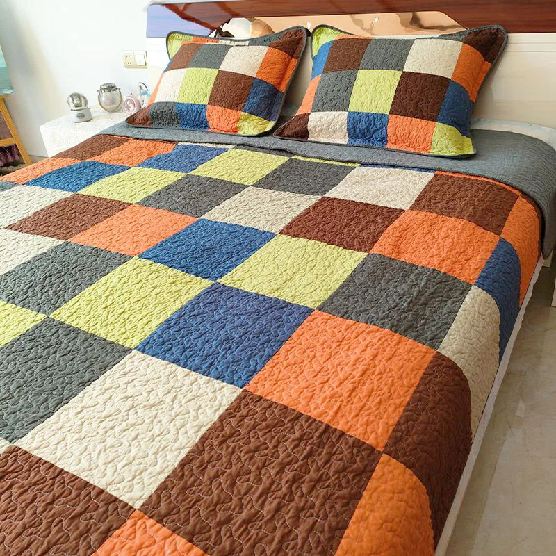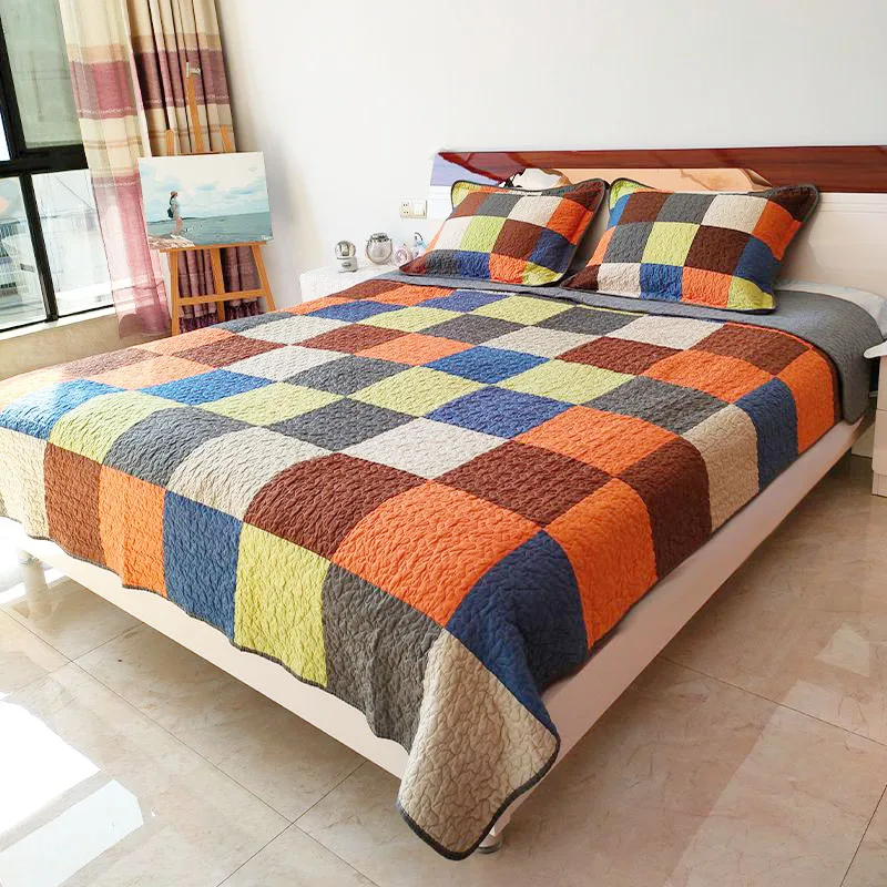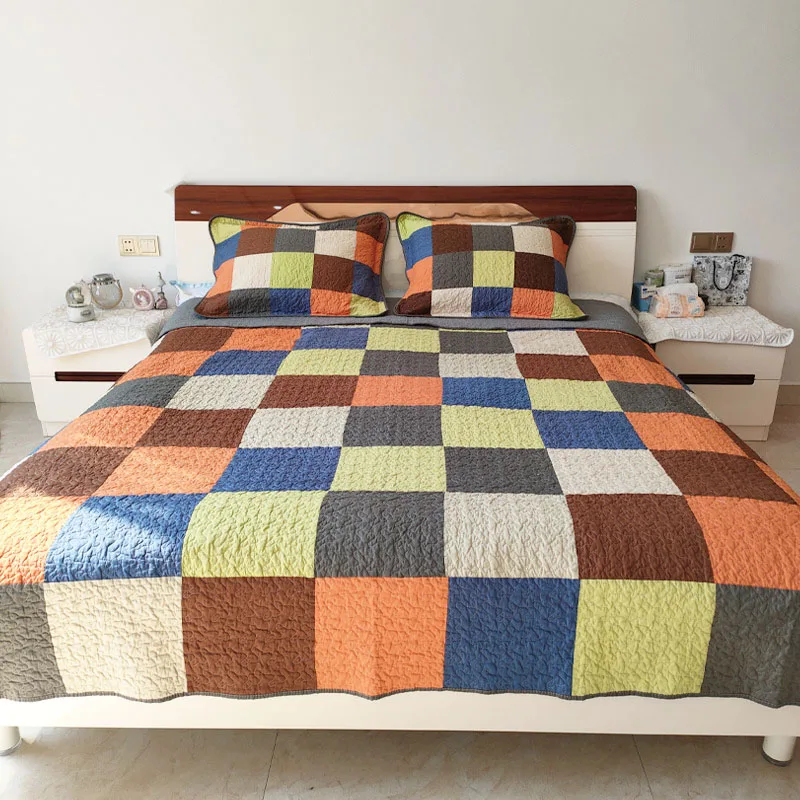 Клетчатое покрывало для кровати, хлопковое стеганое одеяло для двуспальной кровати в стиле кантри, настоящее лоскутное одеяло, комплект, летнее одеяло в спальне