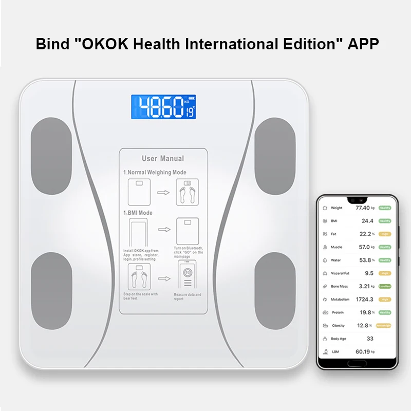 Bluetooth Вес весы жира смарт электронный BMI состав точный мобильный телефон анализатор светодиодный цифровой дисплей напольные весы