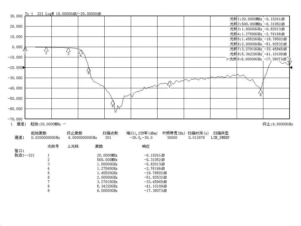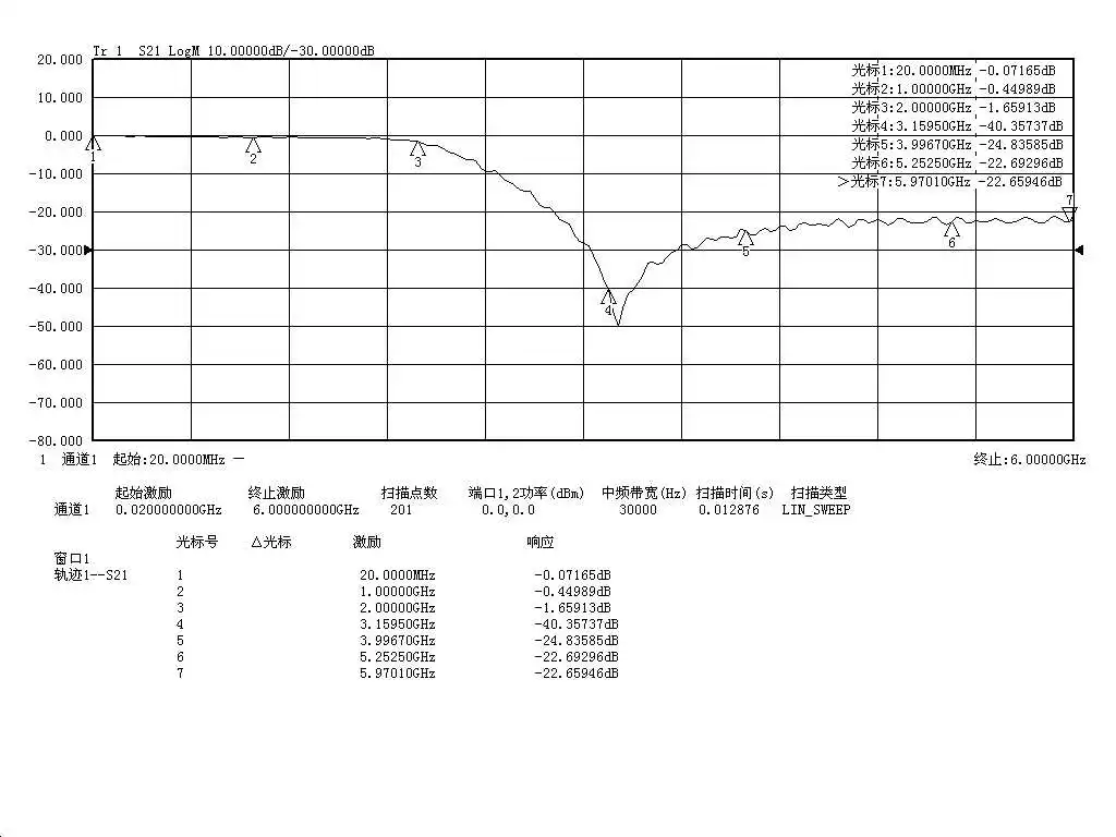 4. Параметры S21, для получения подробной информации обратитесь к измеренной кривой