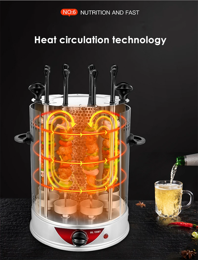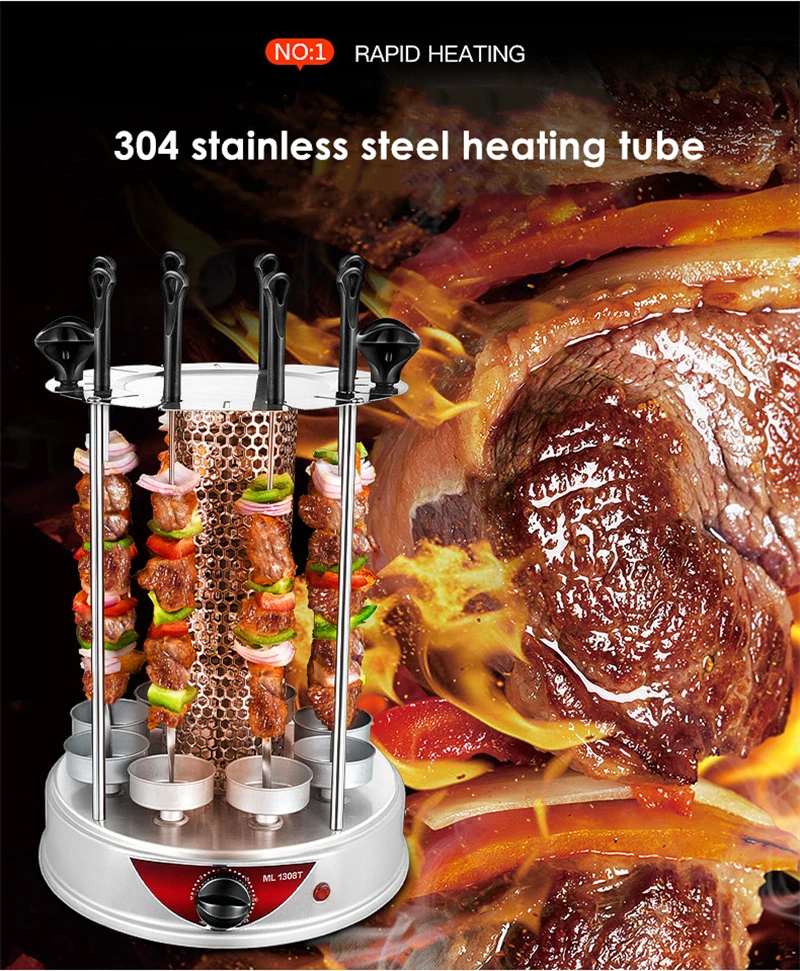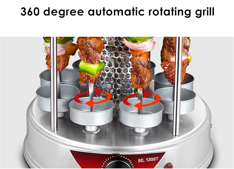 Электрический гриль 6/8/10 палочки автоматический вращающийся вертикальный гриль гриля инструменты бездымного баранины барбекю шашлык машина