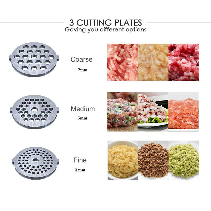 Удобный инструмент-вы вручную нарезали мясо или овощи? Слишком много теряет время. Мясорубка может помочь вам обработать мясо с помощью трех размеров разделочной платформы за 1 минуту, вы получите около 1 кг мясного фарша.