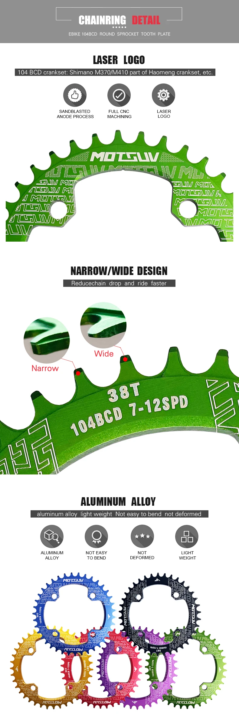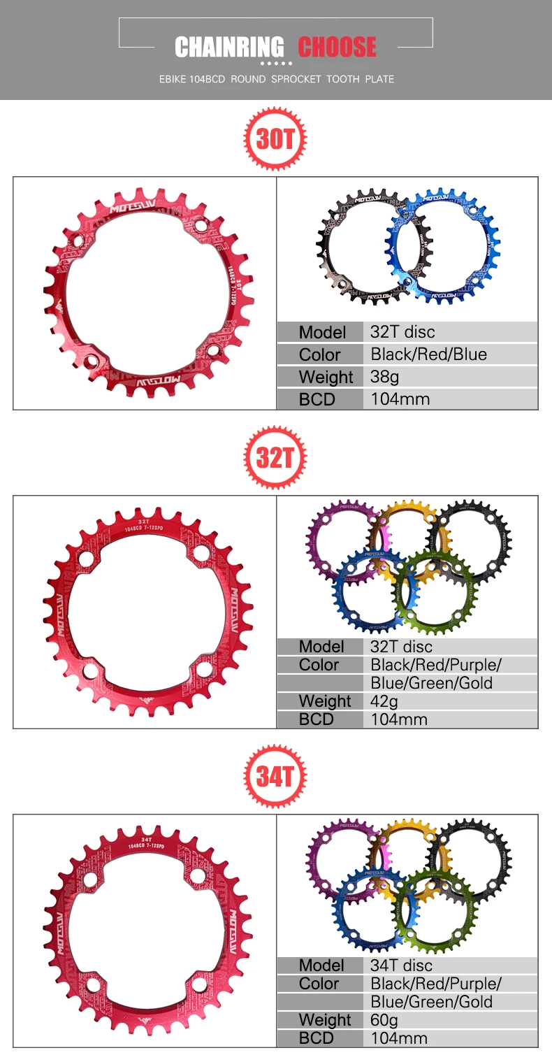 Вес: 32T (около 40g), 34T (около 53g), 36T (около 61g), 38T (около 70g)
