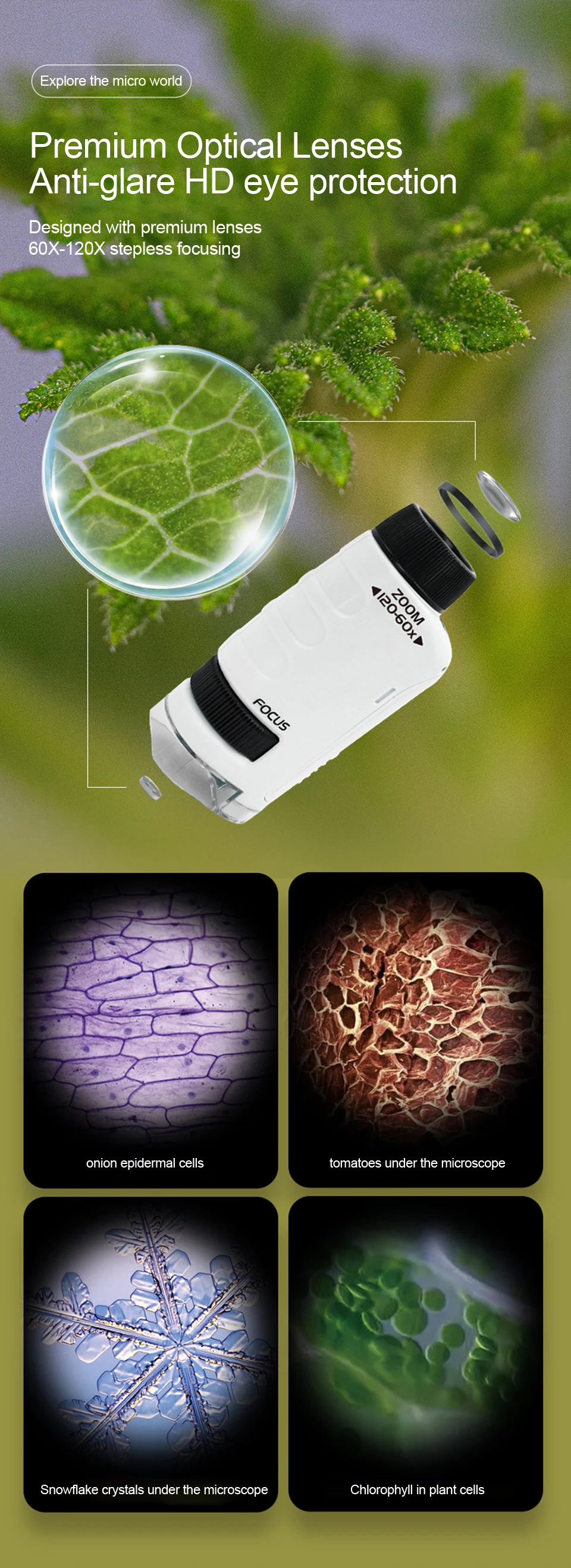 Портативный ручной микроскоп со светодиодной лампой, биологический Карманный микроскоп для детей, школьник, наука, развивающие игрушки для детей, подарок
