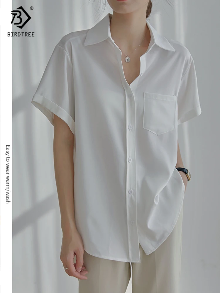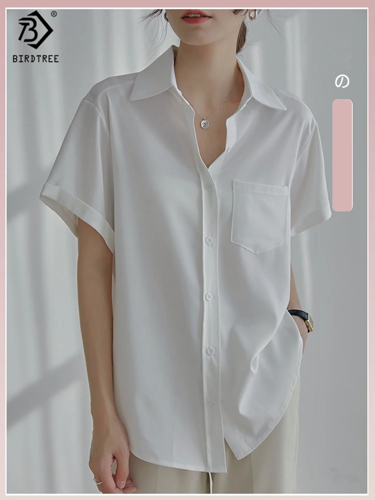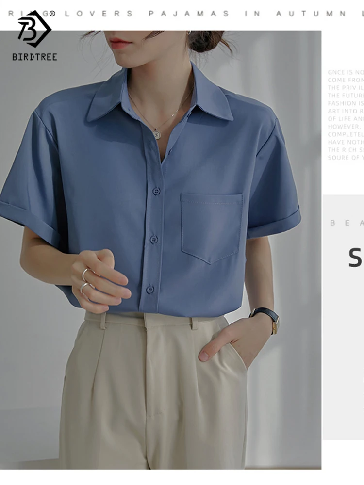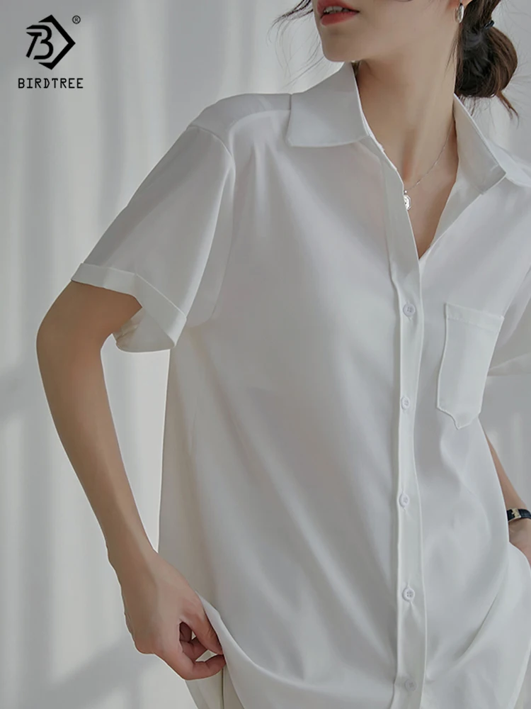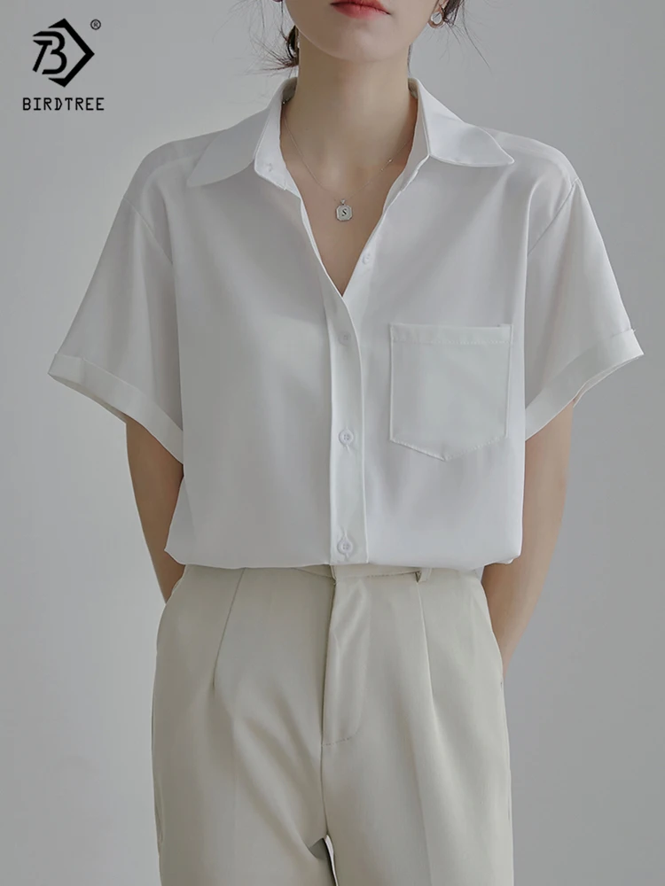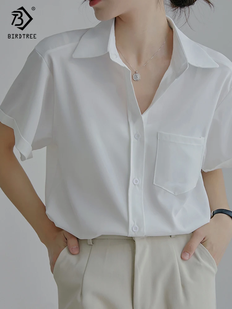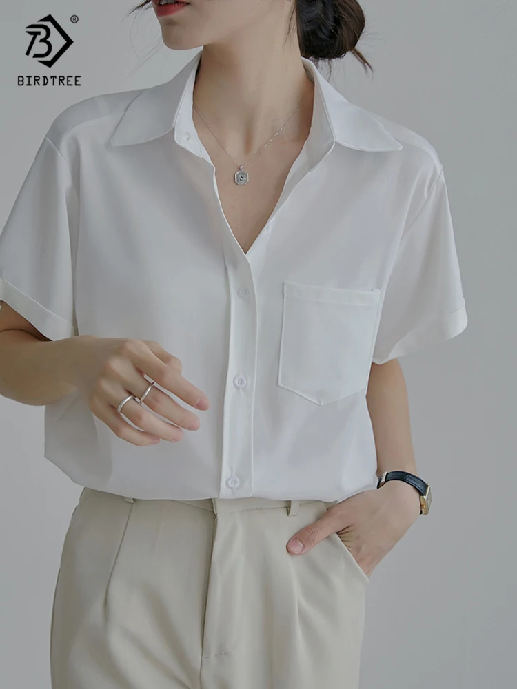 Весна 2022, Новое поступление, лето 2022, белая шифоновая рубашка с коротким рукавом, Повседневная блуза на пуговицах с отложным воротником, с карманами, офисная одежда, элегантные топы, топы, T23303X