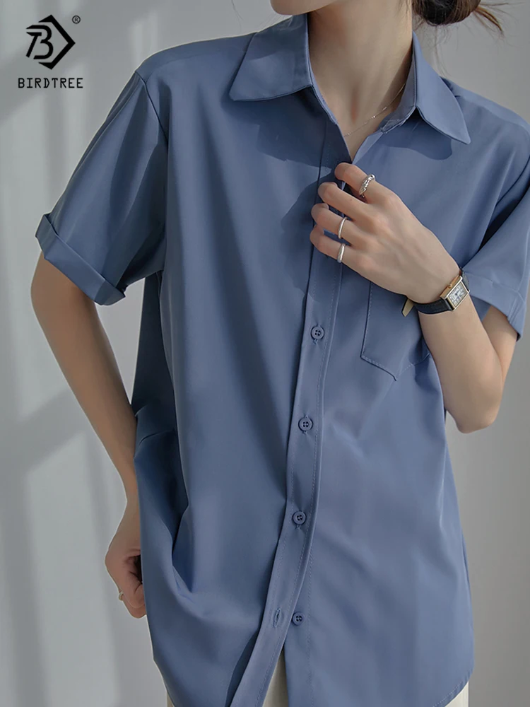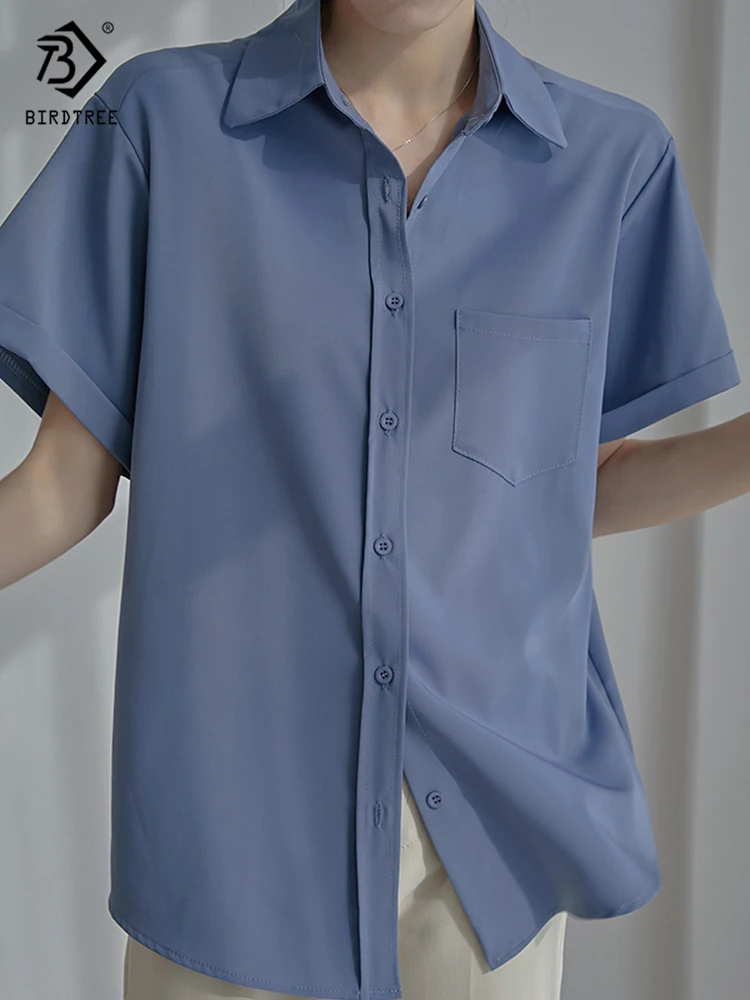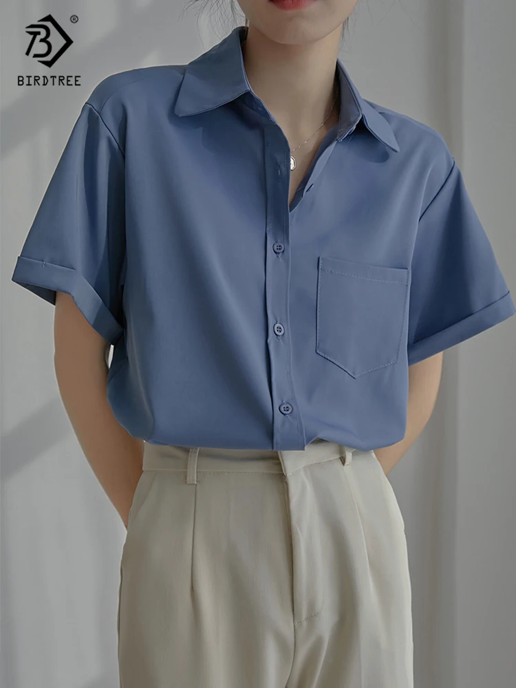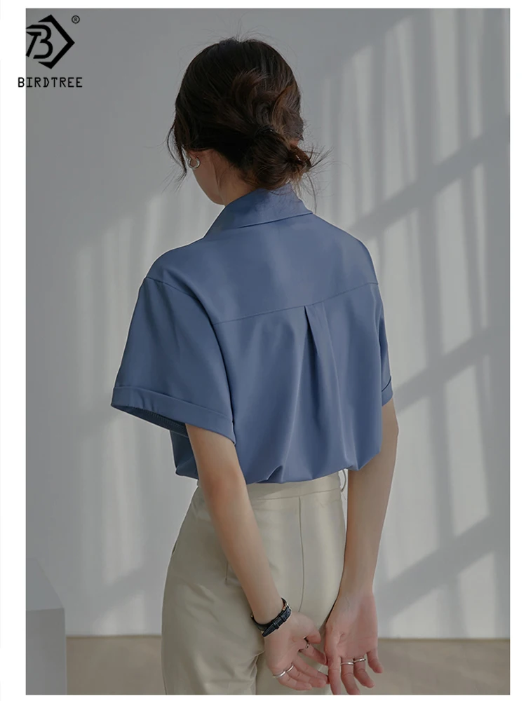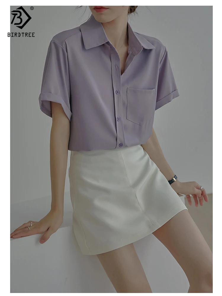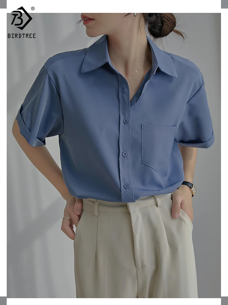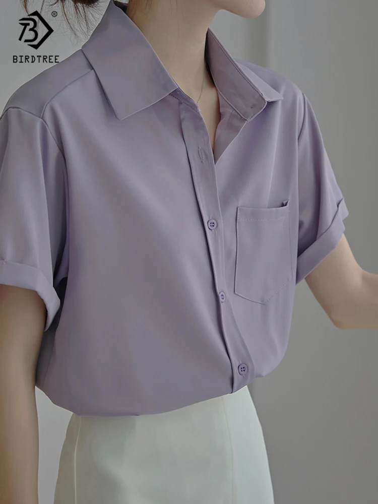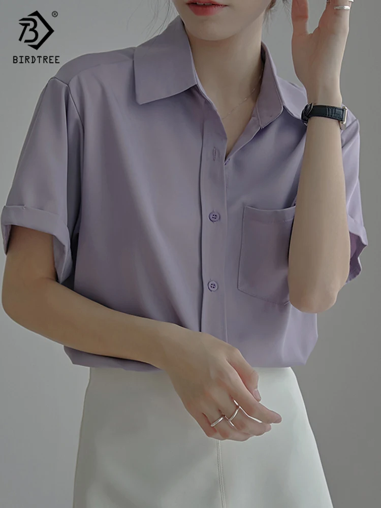 Весна 2022, Новое поступление, лето 2022, белая шифоновая рубашка с коротким рукавом, Повседневная блуза на пуговицах с отложным воротником, с карманами, офисная одежда, элегантные топы, топы, T23303X