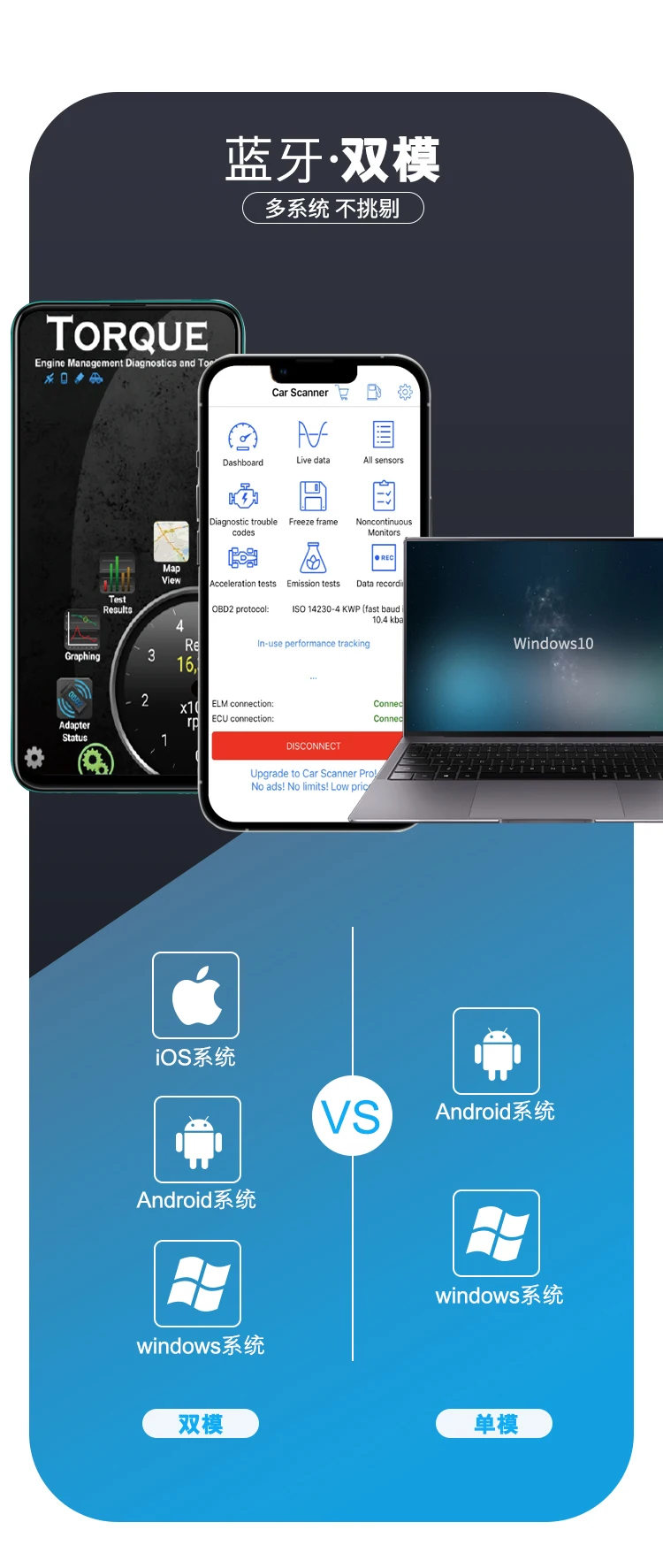 1. Этот вид bluetooth ELM327 предназначен только для системы Android, не поддерживает систему IOS (пожалуйста, выберите elm327 wifi для IOS.