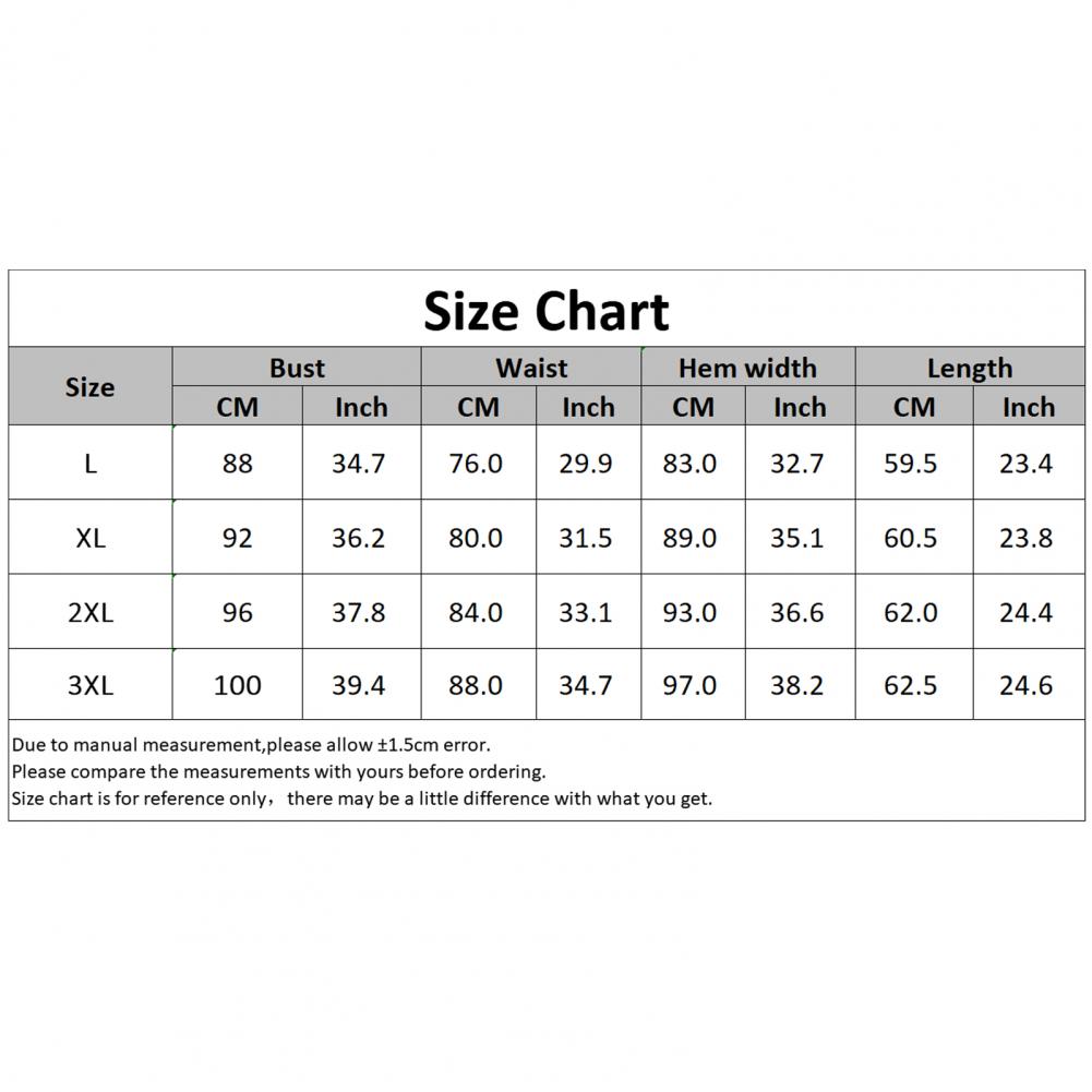 [Наш Размер 3XL] Обхват груди: 100 см/39,4 дюйма, обхват талии: 88 см/34,6 дюйма, ширина подола: 97 см/38,2 дюйма, длина: 62,5 см/24,6 "(прибл.)