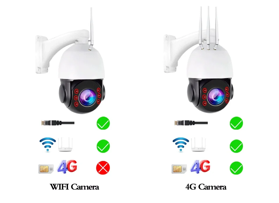 Для подключения можно использовать сетевой кабель. Вы также можете использовать беспроводное соединение: вам нужно выбрать сигнал WiFi или сигнал 4G для вашей камеры. Версия 4G по умолчанию подключена к сигналу 4G. Если вы хотите использовать WiFi. Пожалуйста, включите сигнал в управлении WiFi в приложении.