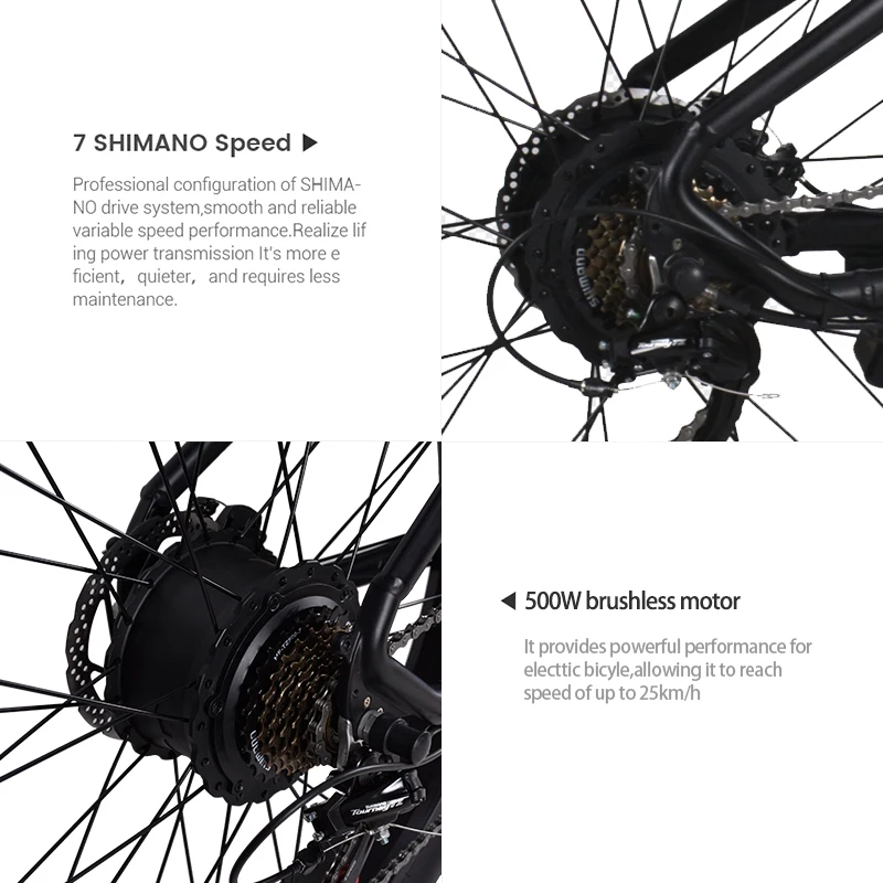 7 Скорость SHIMANO, профессиональная конфигурация системы привода SHIMANO, Дымчатая и надежная производительность переменной скорости. Реализуйте срок службы передачи энергии. Она более Поверхностная, тихая и требует меньшего обслуживания.