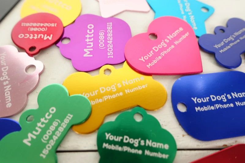 Розничная торговля гравировкой высокого качества цвета алюминиевая рамка Жетоны для собак, удобный лепить собака имя, номер телефона DIY Жетоны для собак в 10 видов цветов