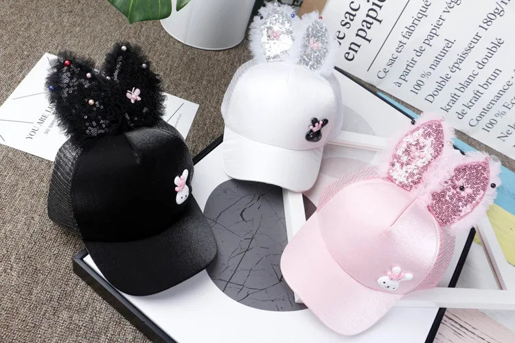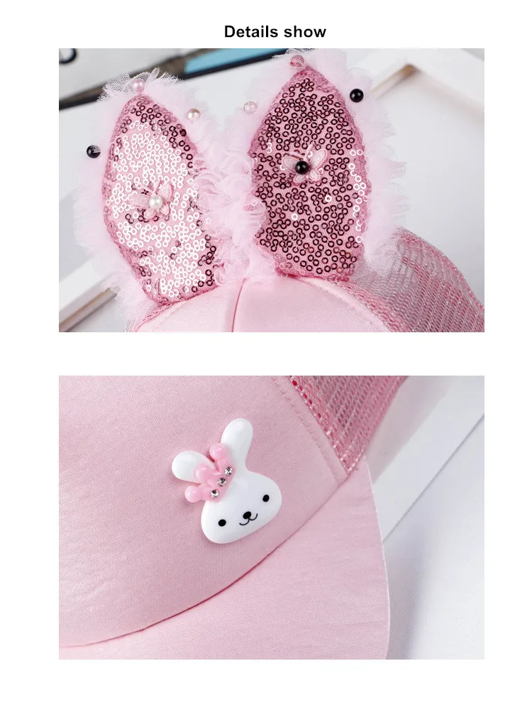 Название:Бейсбольная кепка с заячьими ушками для маленьких детей; Спортивная шапка принцессы с блестками и бантом и жемчугом для девочек