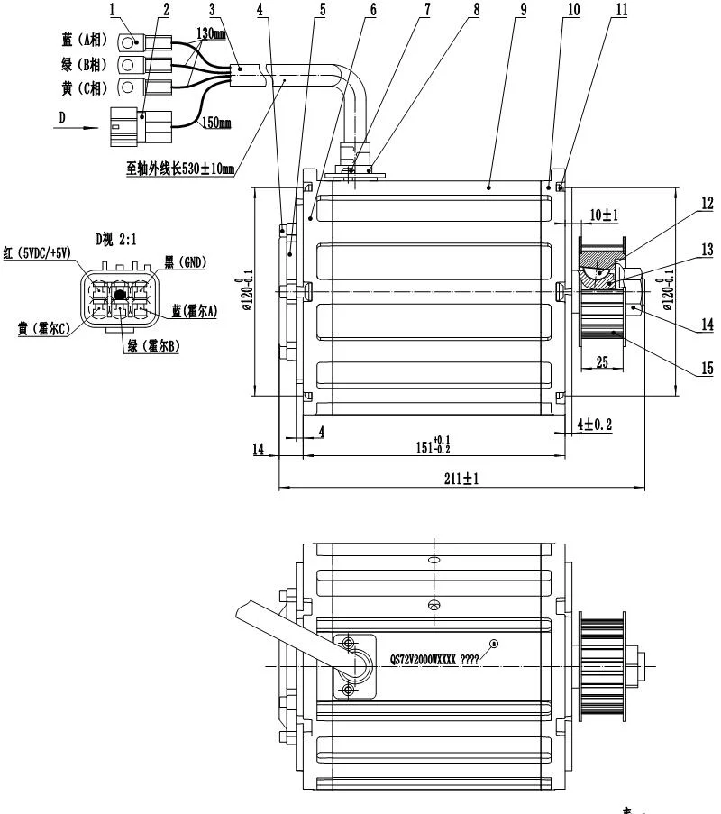 1 шт. x QS120 2 кВт Средний приводной двигатель (ремень или Звездочка)