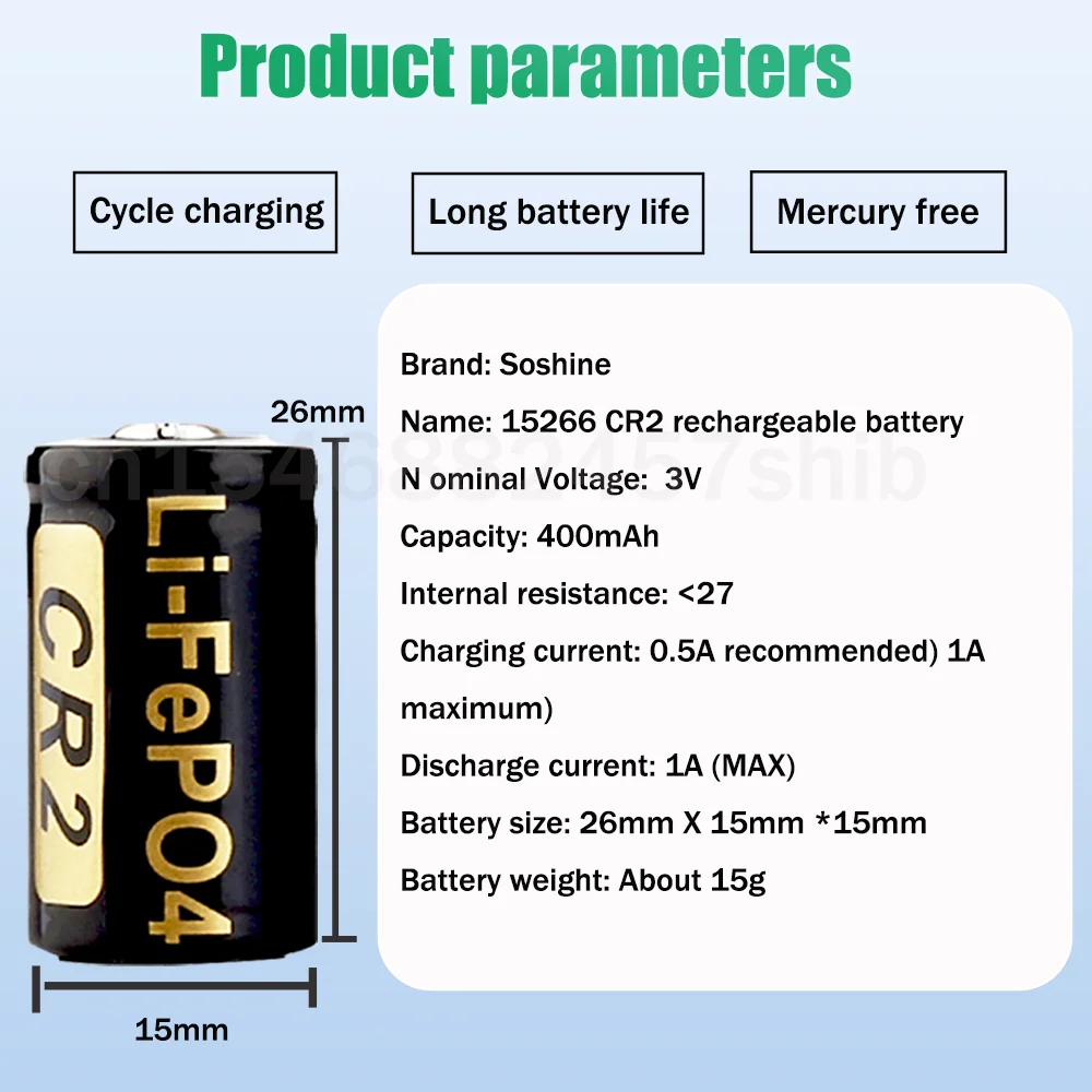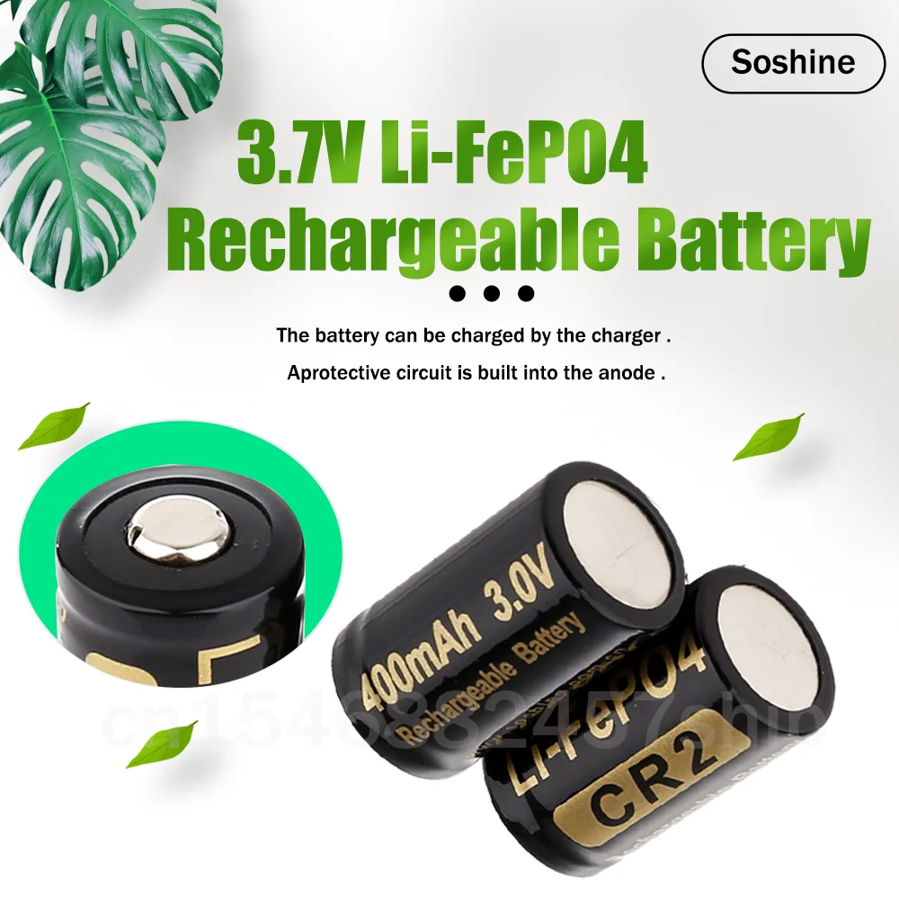 Soshine 3V 400mAh CR2 15266 KCR2 CR15H270 CR15266 перезаряжаемая LiFePO4 батарея для светодиодный фонарик налобный фонарь дверной Звонок батареи