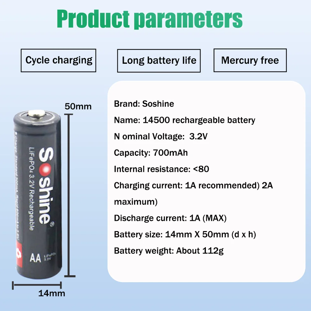 4-20 шт Оригинальный Soshine 14500 3,2 V 700mAh AA Li-FePO4 аккумуляторная батарея для фонарика дверной звонок беспроводная мышка с камерой бритва