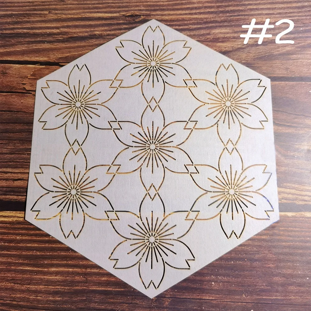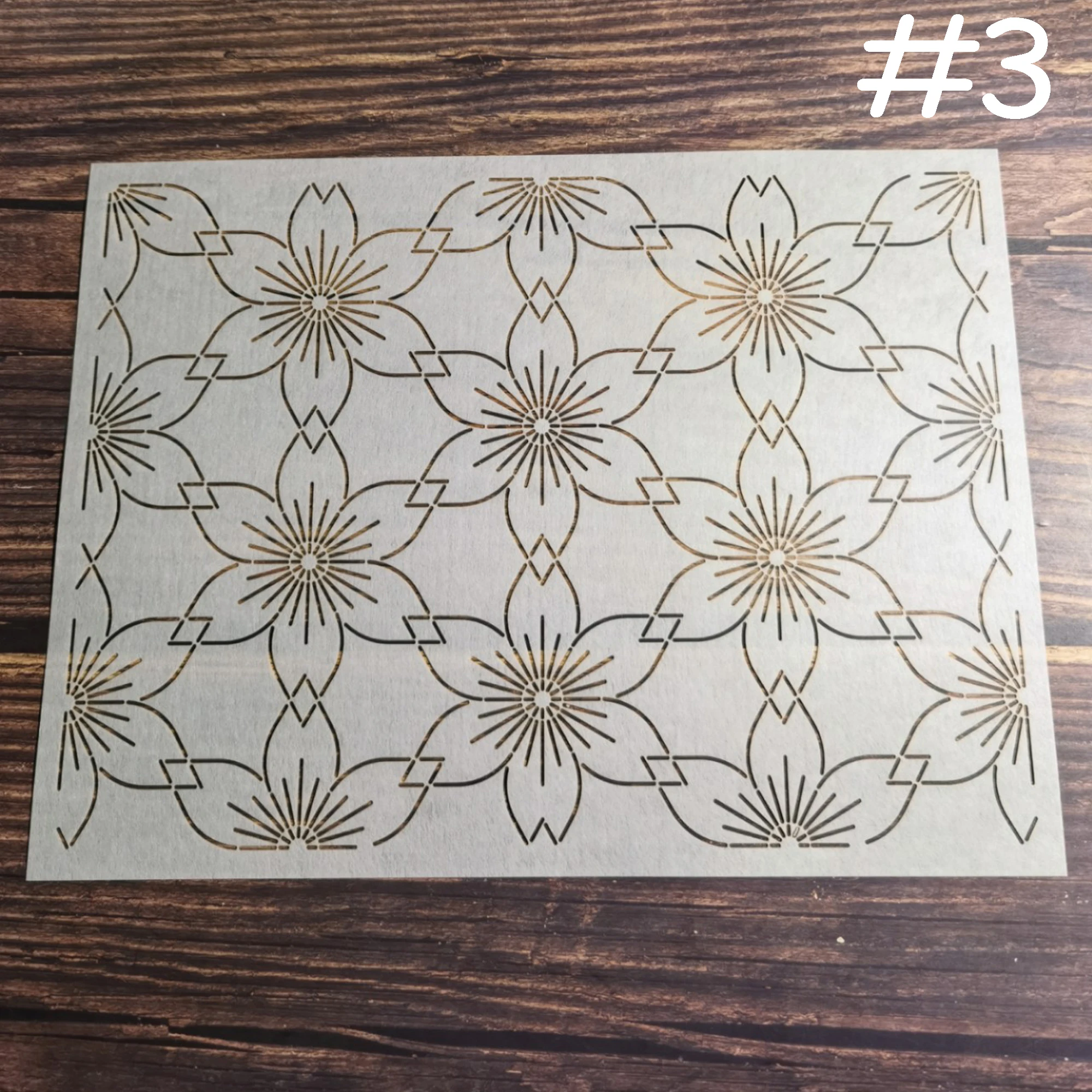 Трафарет Sashiko, вышивка Sashiko, стежок, 3 варианта рисунка, узор с Сакурой, узор coaster