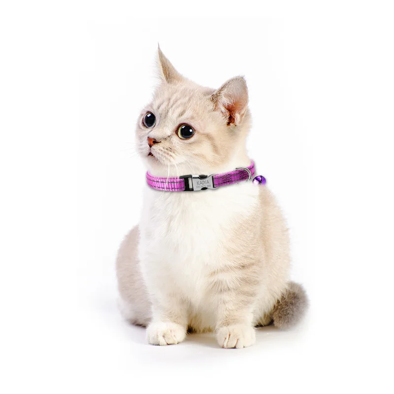Персонализированный ошейник для кошки, регулируемое ожерелье с котенком и кроликом, ночные Светоотражающие анти-потерянные нейлоновые ошейники для питомцев С КОЛОКОЛЬЧИКАМИ