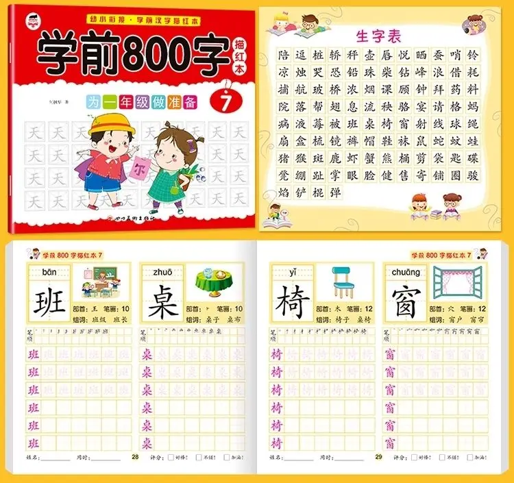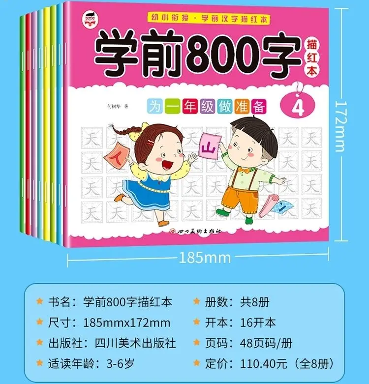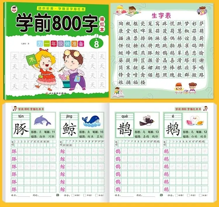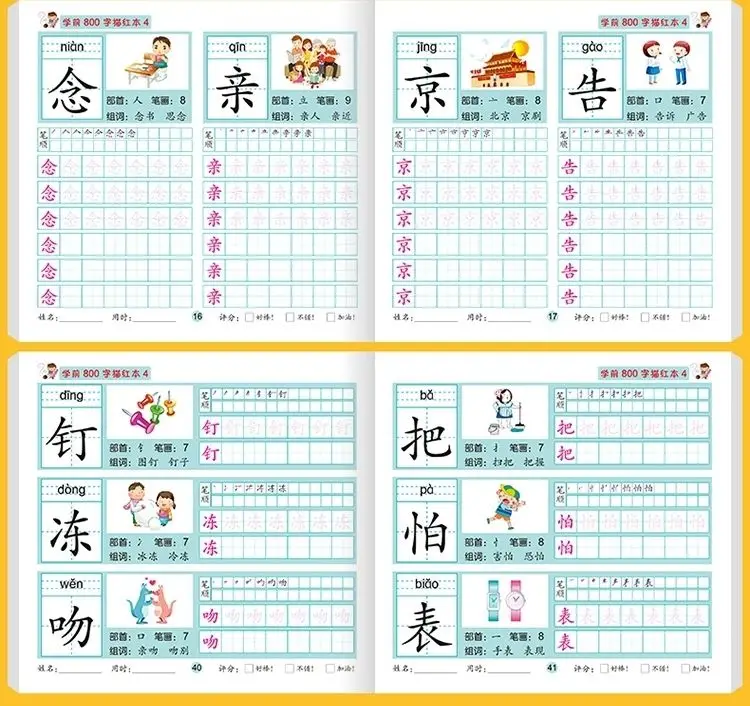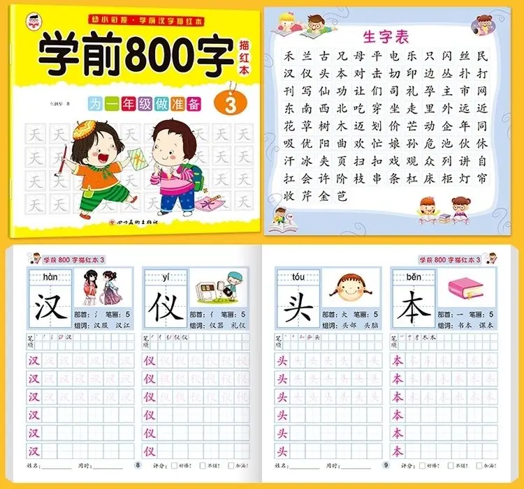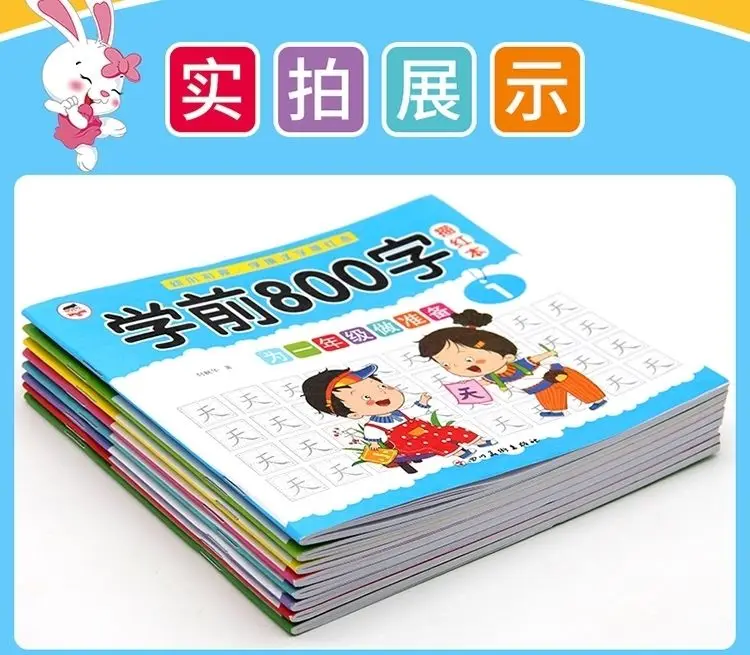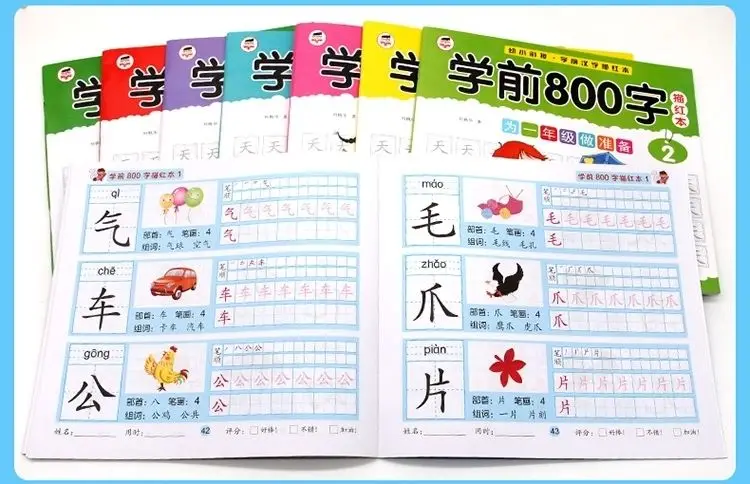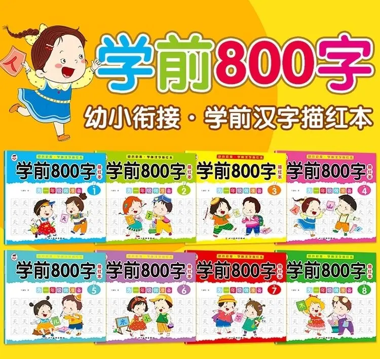 8 книг/набор детский карандаш китайская Трассировка красный 800-характер дошкольников детей в возрасте 3-6 тетрадь для практики раннего образования книга