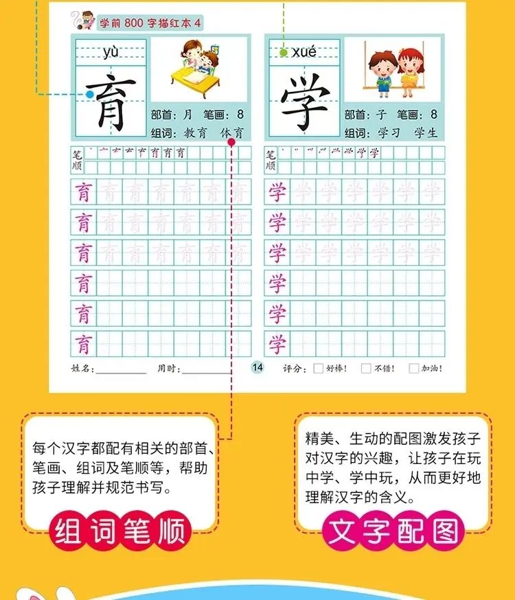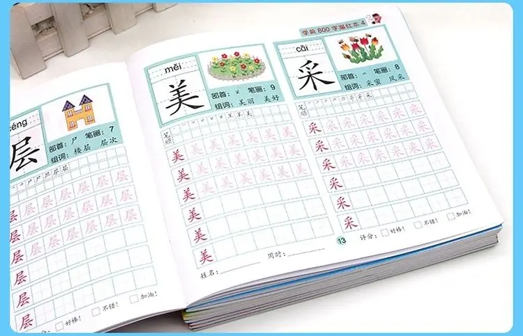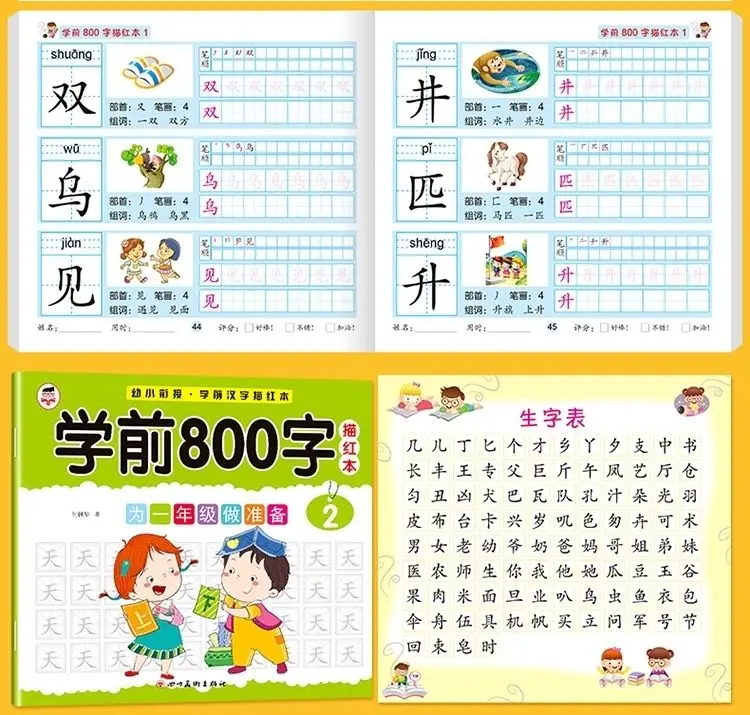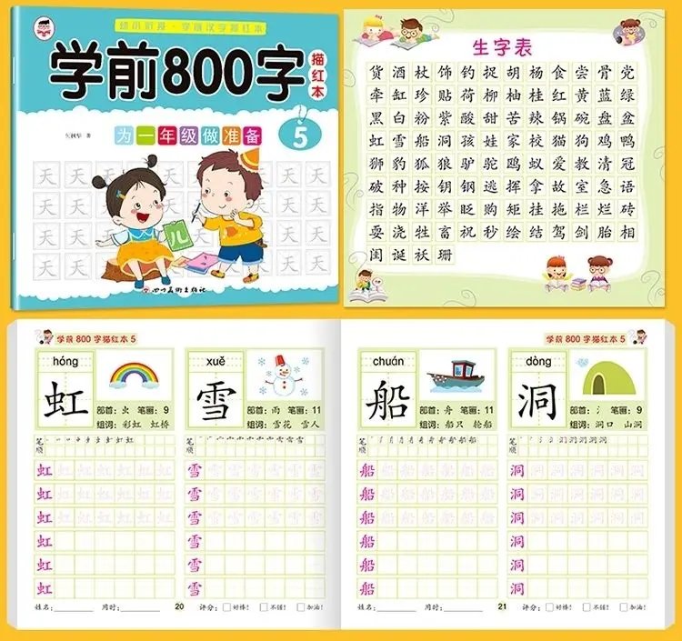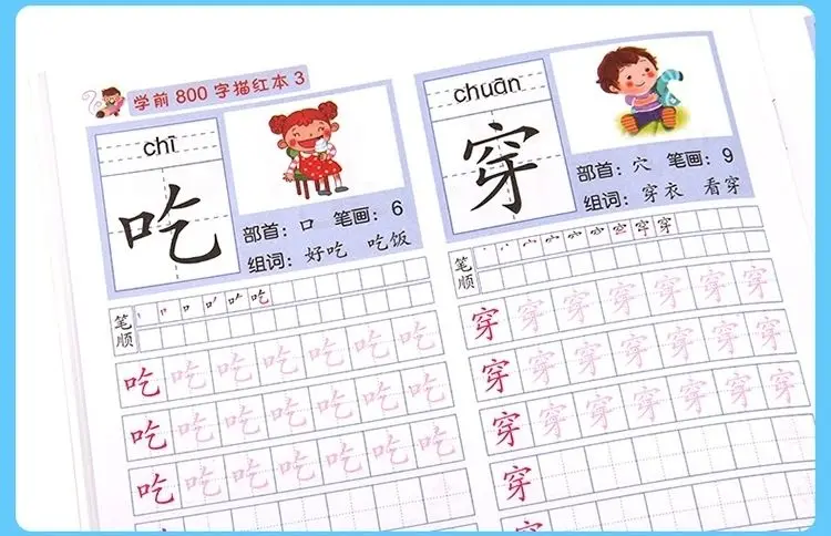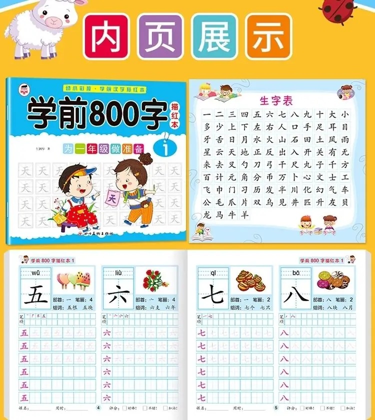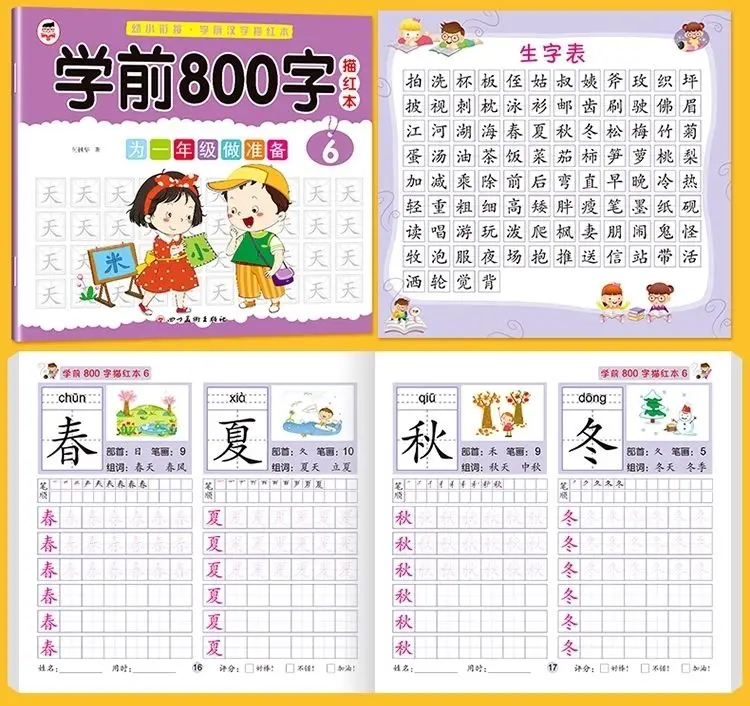 8 книг/набор детский карандаш китайская Трассировка красный 800-характер дошкольников детей в возрасте 3-6 тетрадь для практики раннего образования книга