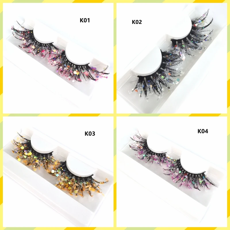 Название: 25 мм Цветные светящиеся 3d накладные ресницы натуральный макияж сценический макияж блестящий порошок блестки сверлильные толстые преувеличенные ресницы поддельные норковые цветные насыщенные ресницы