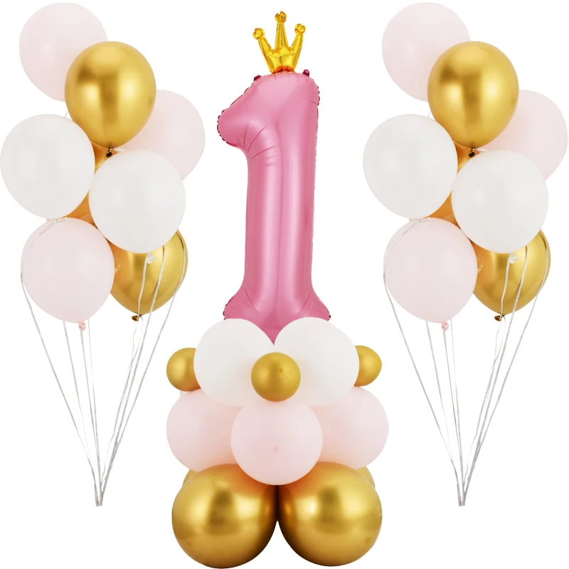 33 шт./компл., воздушные шары с номером короны, розовые шары из латекса, металликос, воздушные шары для первого дня рождения, вечерние украшения для девочек, подарок для детей, Детский душ