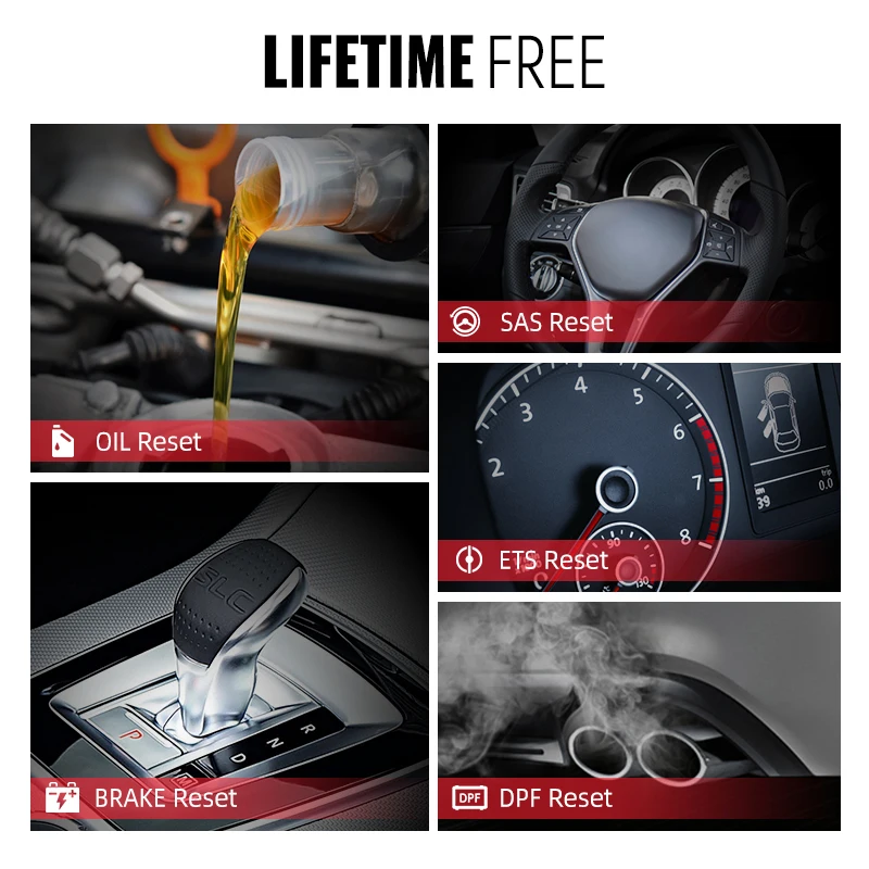 2. Поддержка 28 сбросов, 5 сбросов срока службы без масла/тормоза/SAS /ETS /DPF Сброс срока службы бесплатно для одного индивидуального бренда автомобиля, другие 23 сбросаКаждый 29,95 долл. США в год.