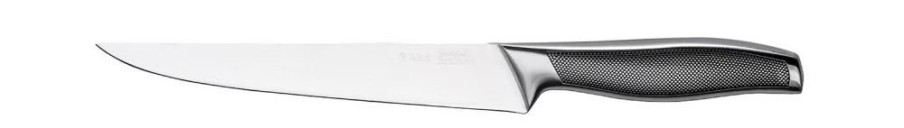Все ножи Taller выполнены из стали AISI 420S45, а обусловлено это тем, что именно такая, среднеуглеродистая сталь (0,4%) по шкале Роквелла и является «золотой серединой».Среднеуглеродистая сталь AISI 420S45 обладает хорошей прочностью и при этом идеальными антикоррозийными свойствами.Именно благодаря этой стали нож одновременно достаточно твердый и долго держит заточку, и в то же время достаточно мягкий для того, чтобы не ломаться во время готовки.
